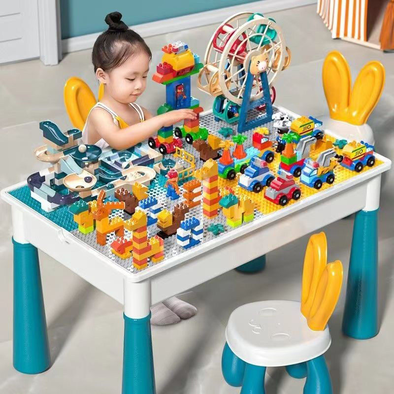 儿童积木桌子益智玩具拼装大颗粒多功能游戏桌拼图3到6岁兼容乐高