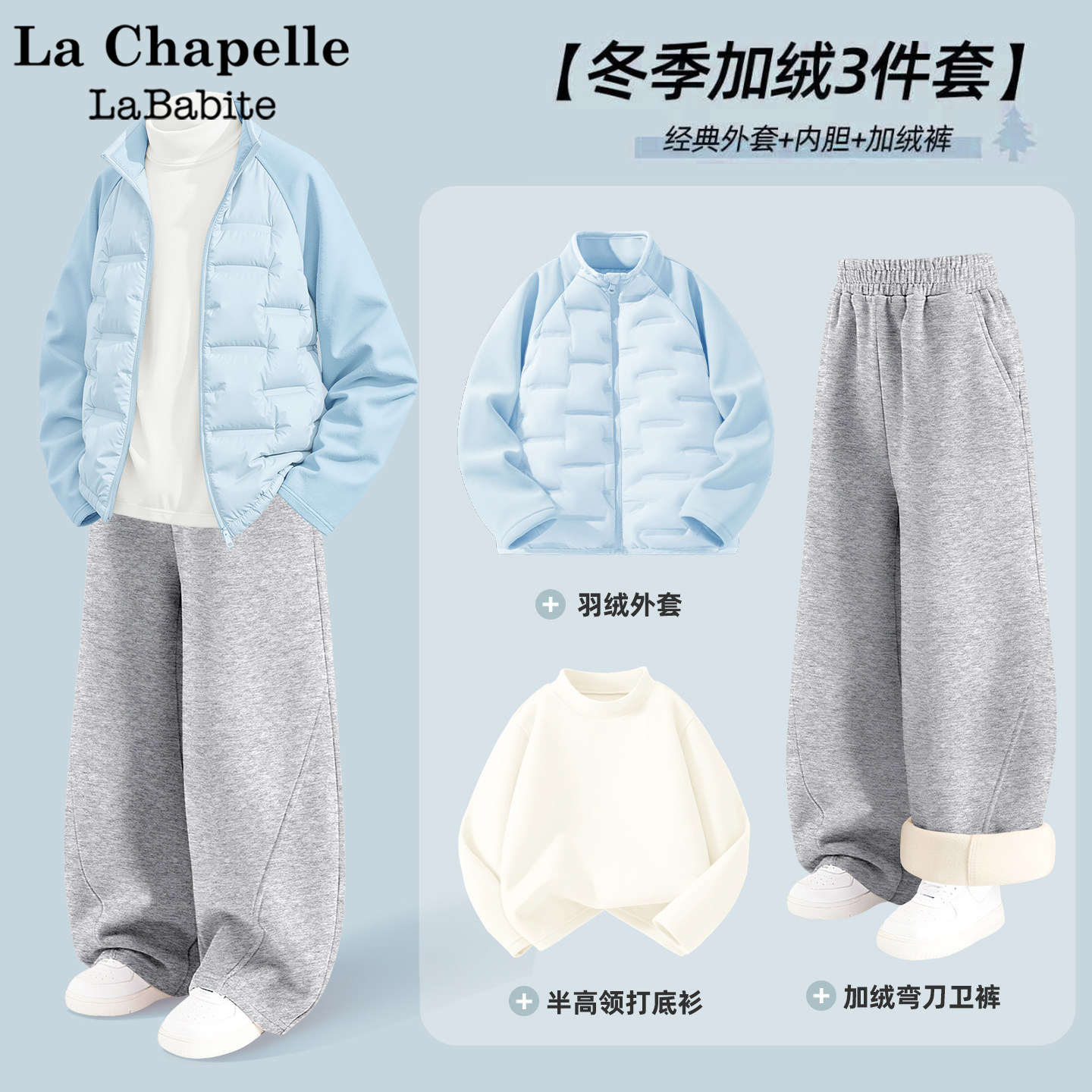 拉夏贝尔女童冬套装2026新款羽绒外套加绒弯刀裤儿童冬装三件套