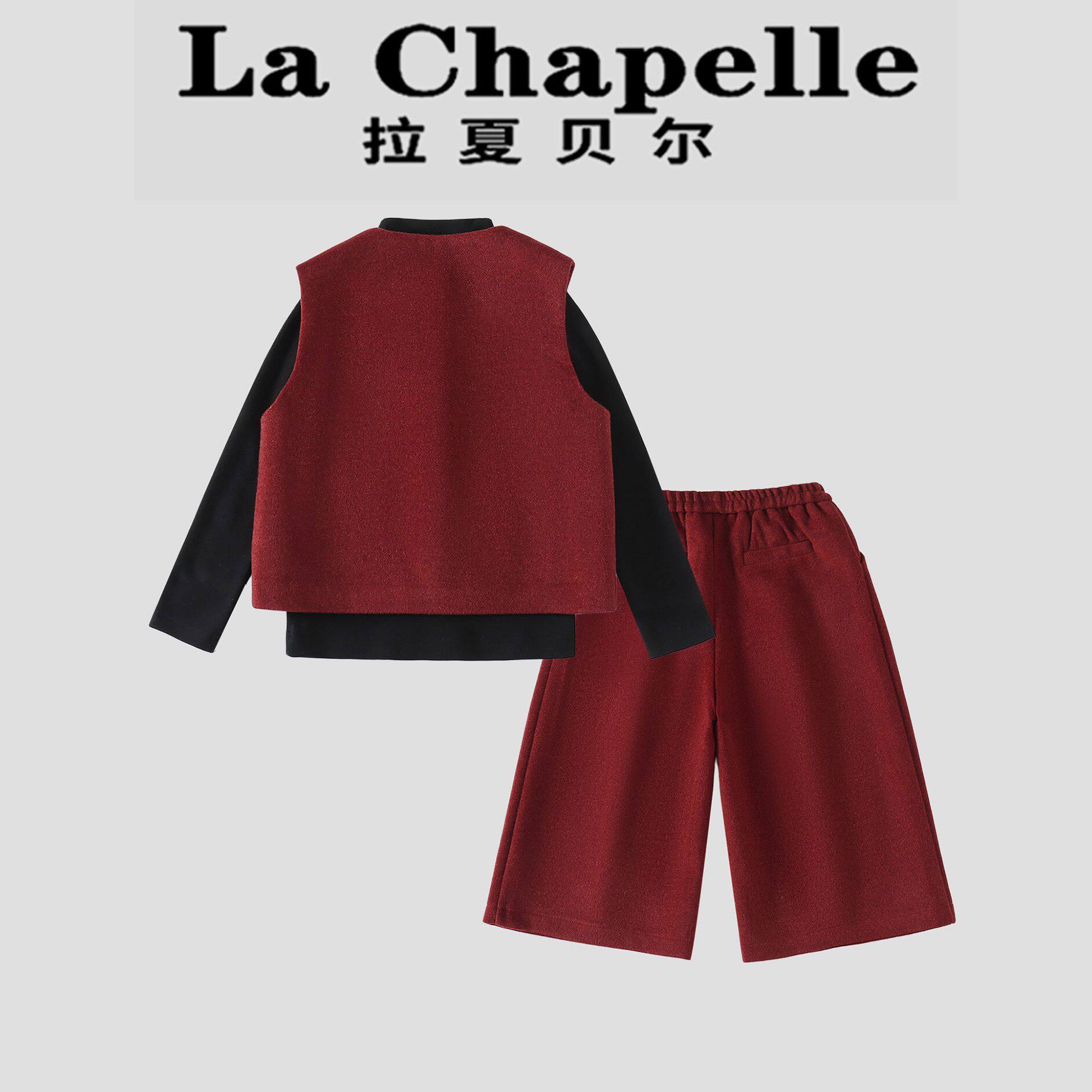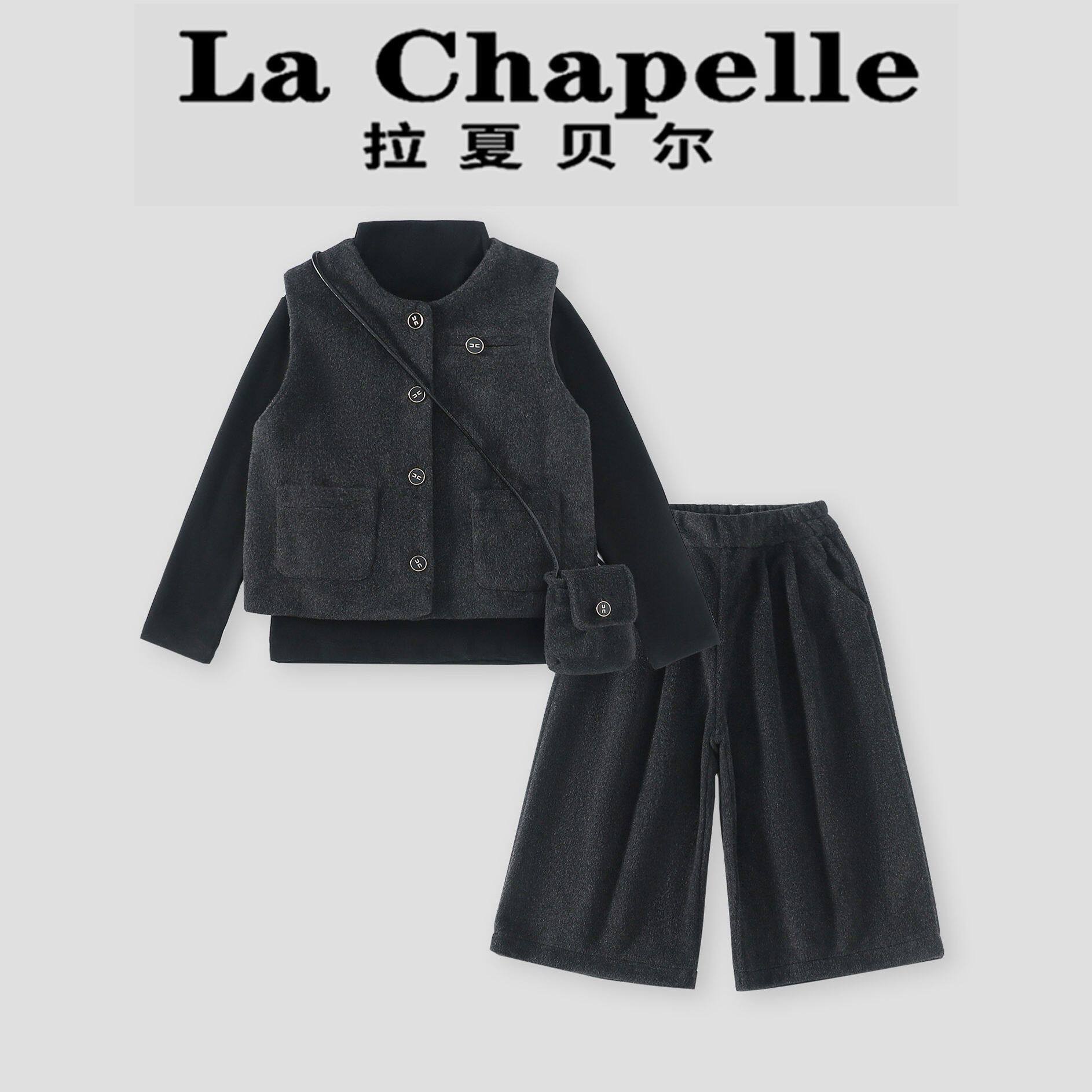 拉夏贝尔童装女童冬装套装2026冬季新款儿童衣服毛呢马甲三件套潮
