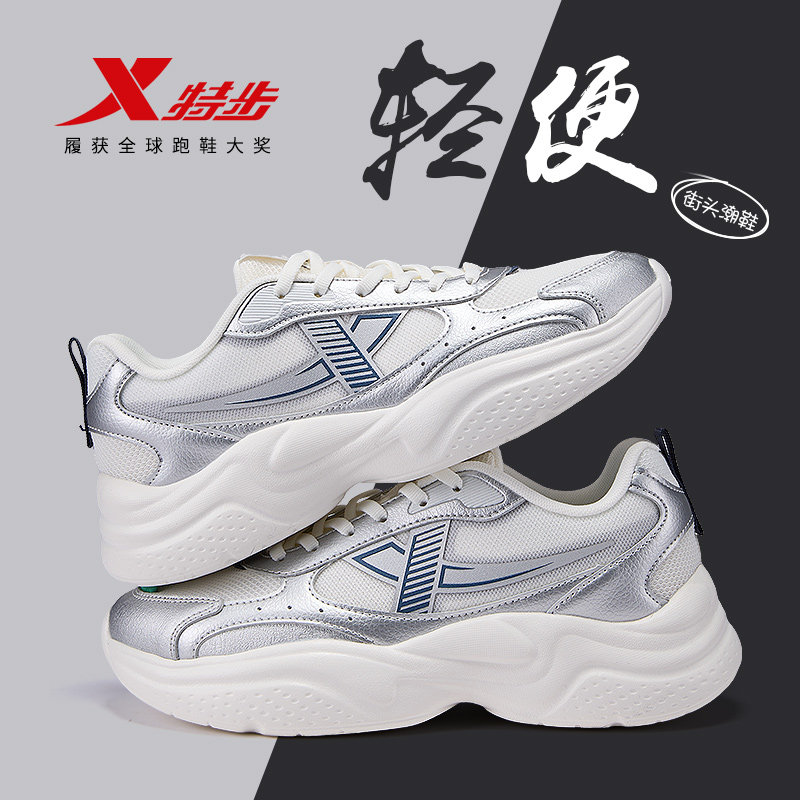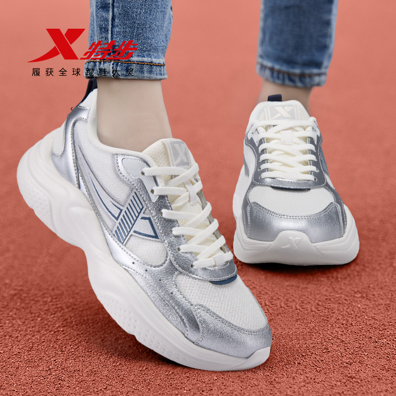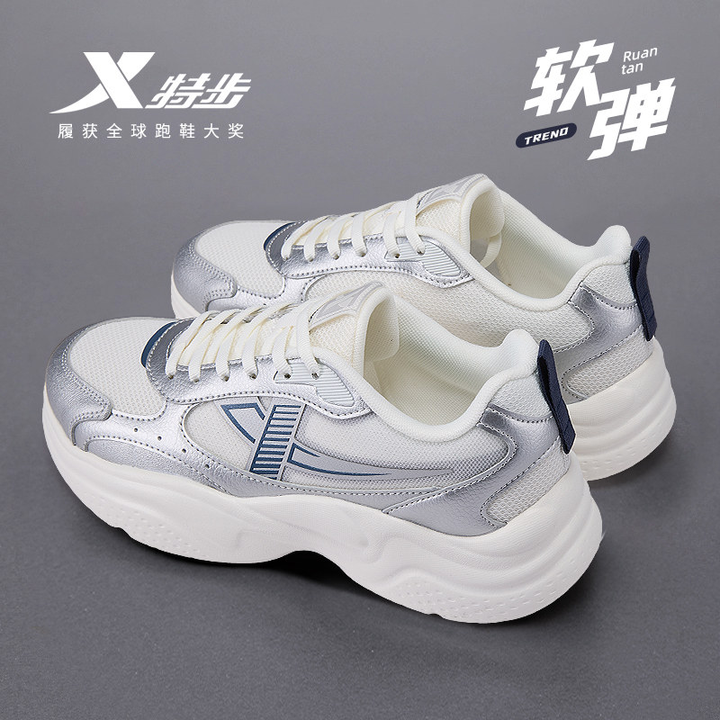 特步女鞋2026新款网面透气运动鞋女款厚底增高老爹鞋初中生休闲鞋