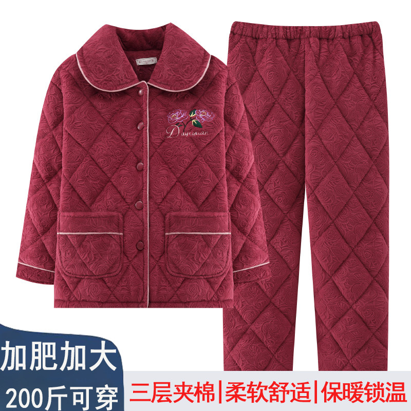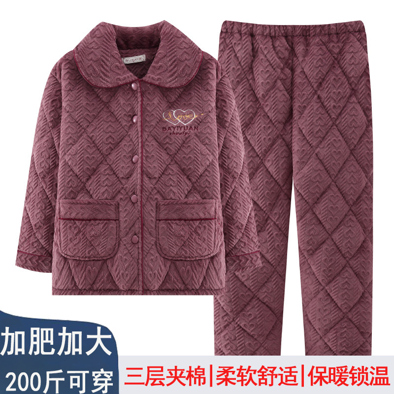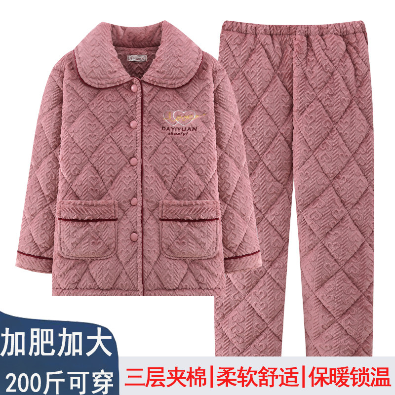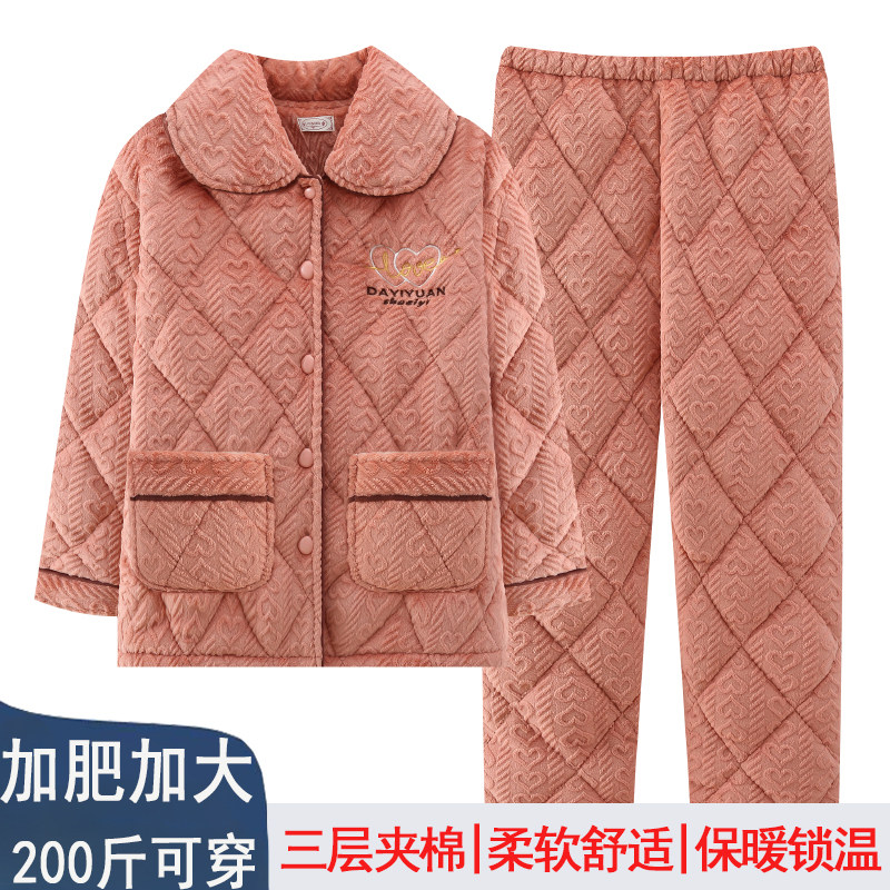 加厚珊瑚绒睡衣女秋冬季2024新款三层夹棉可外穿家居服保暖套装