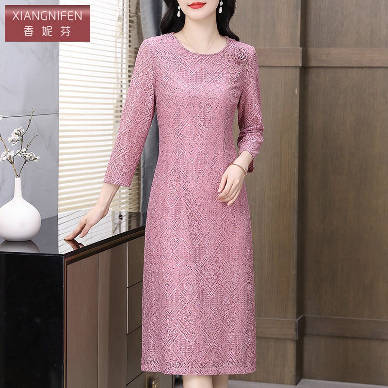 香妮芬高端精致小香风连衣裙女2026新款春季长袖阔太太高贵洋气裙