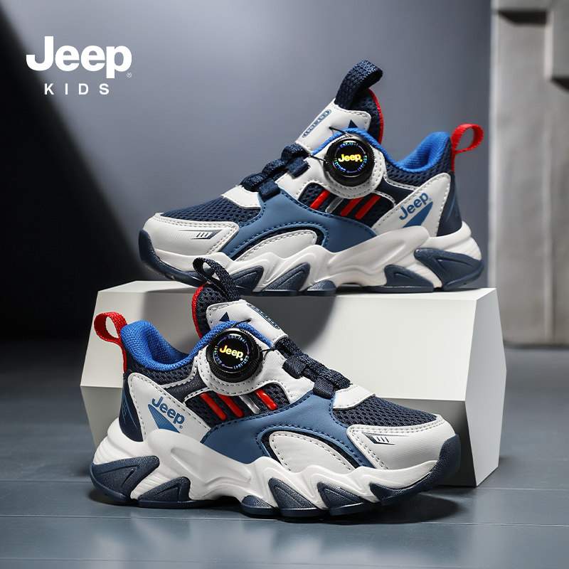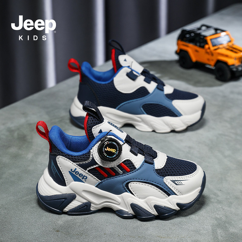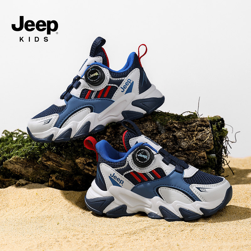 Jeep男童运动鞋2026新款时尚儿童鞋子春季网面透气软底跑步鞋女童
