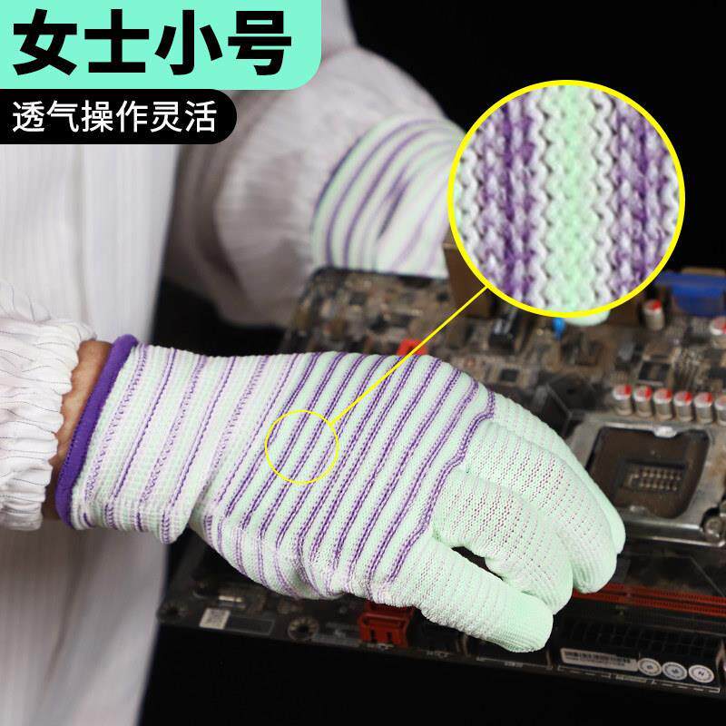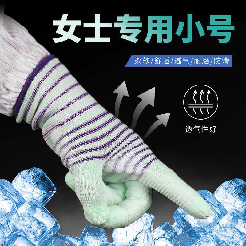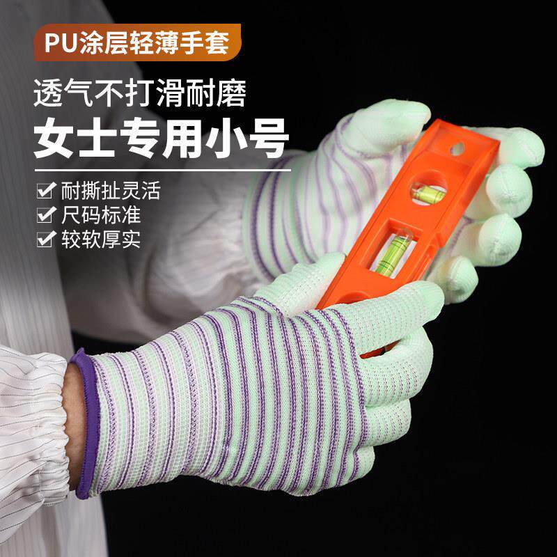 干活斑马小号女士掌薄款专用手套耐磨耐用带胶防静电纹涂防滑柔软