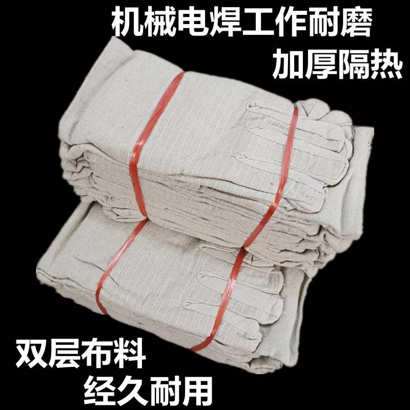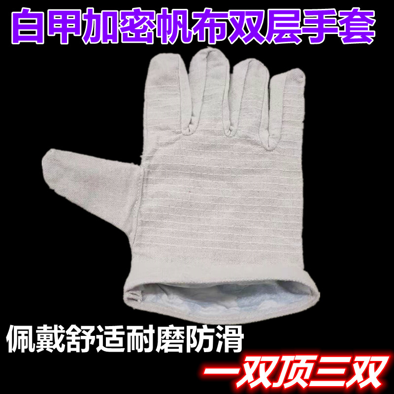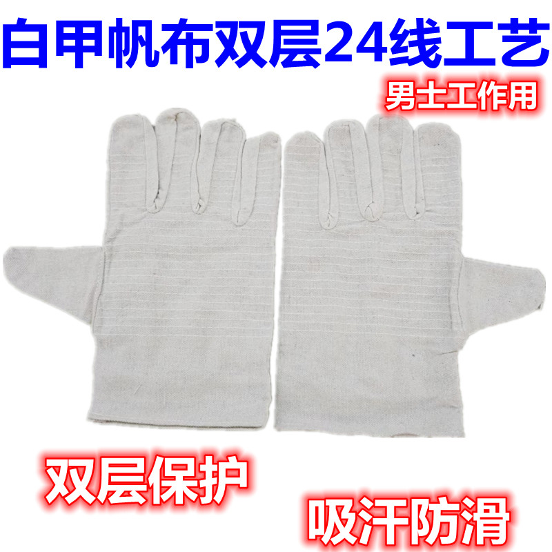 白甲帆布24线双层全衬机械男士工作手套耐磨防滑加厚电焊防护用品