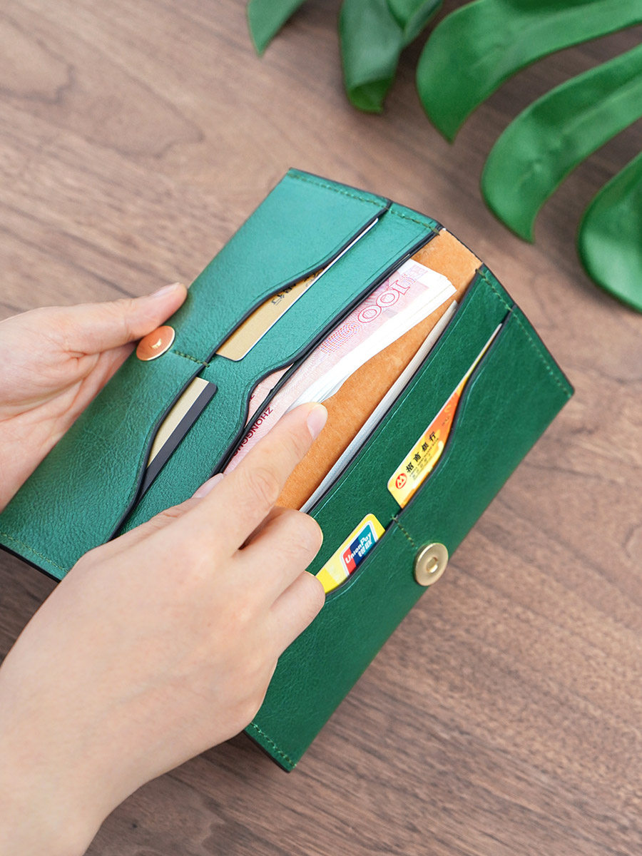 牧石MOOSHI手工皮具定制进口真皮女长款钱夹超薄简约男士素人钱包