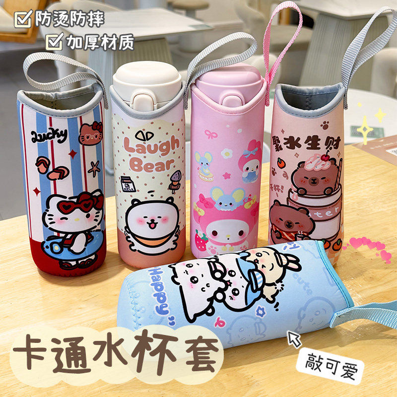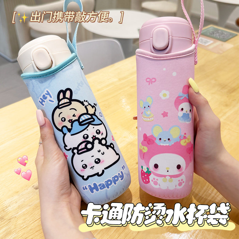 卡通可爱便携式保温杯杯套隔热防摔玻璃杯保护套儿童水杯手提杯套