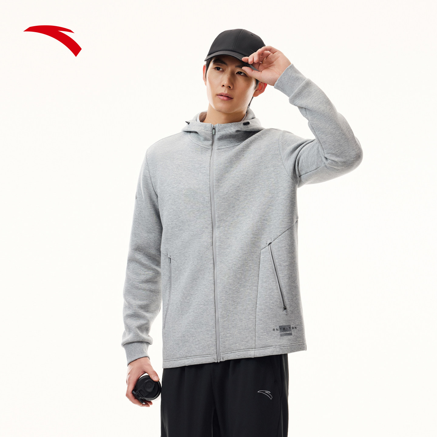 安踏连帽运动外套男士春季新款针织开衫休闲卫衣长袖行政夹克男装