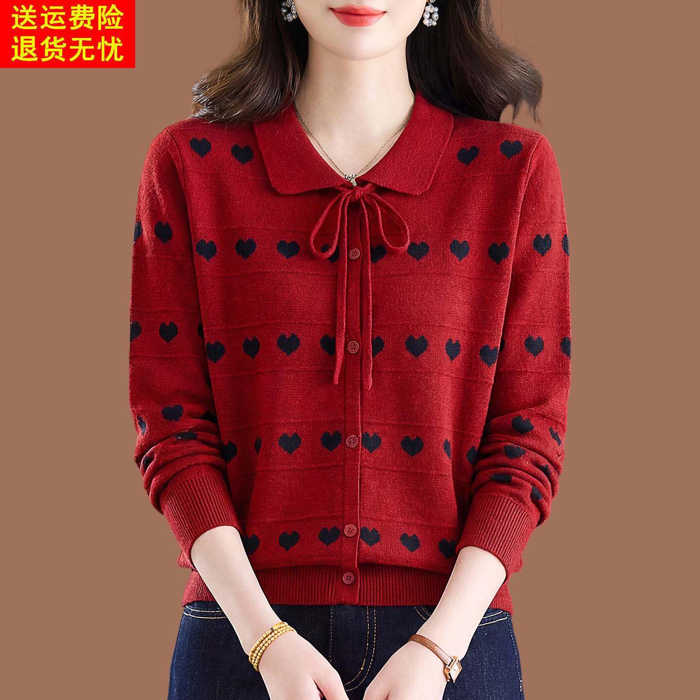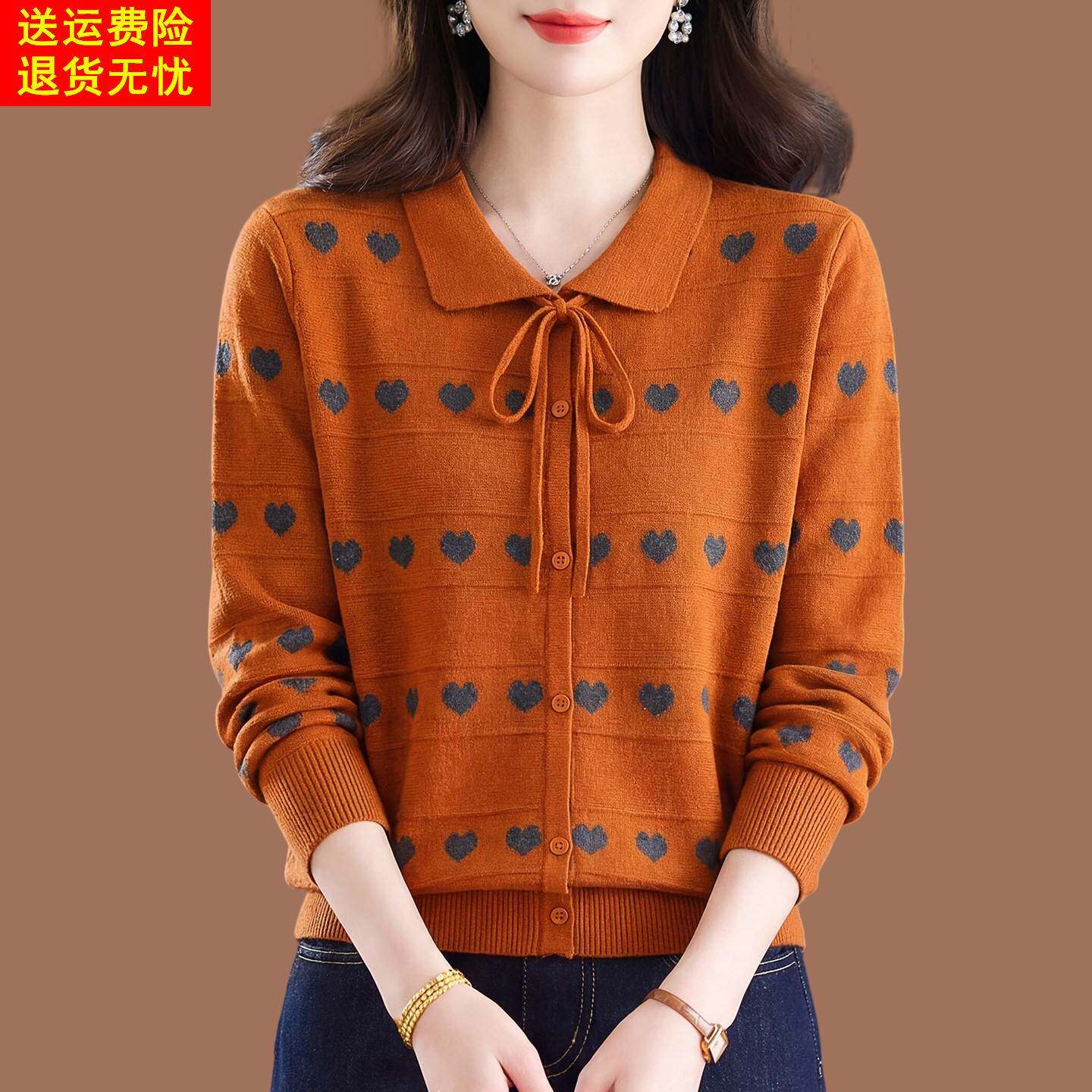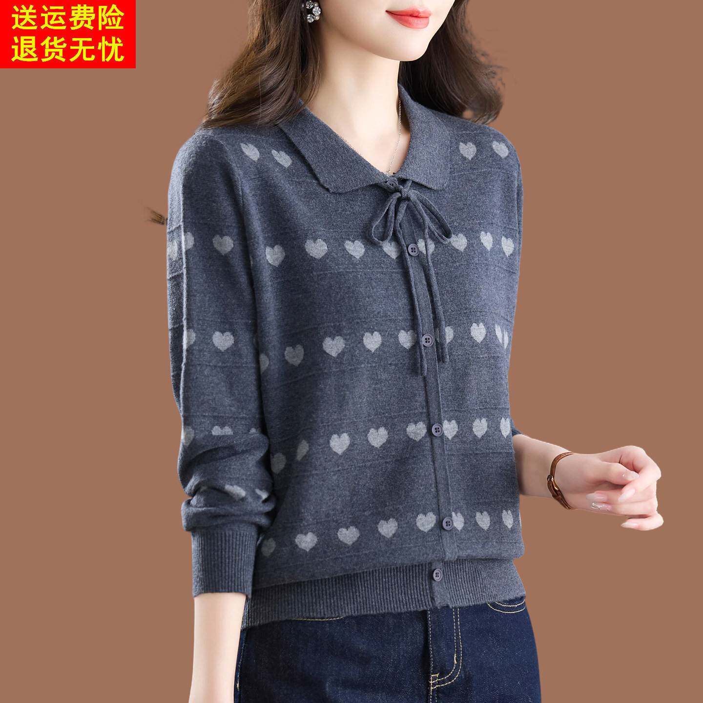 桑蚕丝长袖t恤女春款2026新款妈妈装polo领打底上衣高端针织小衫