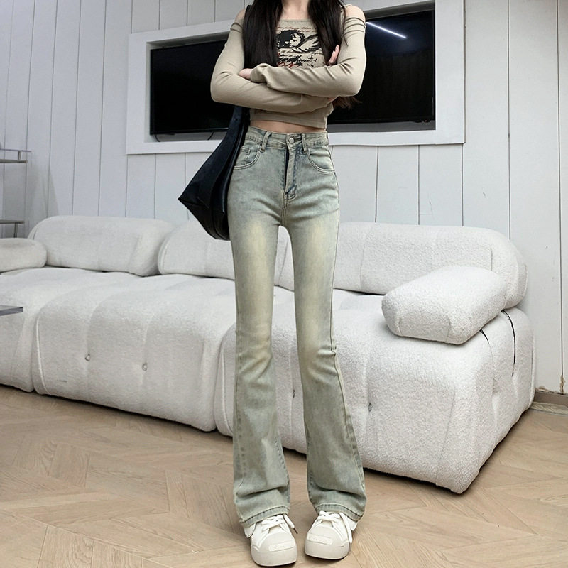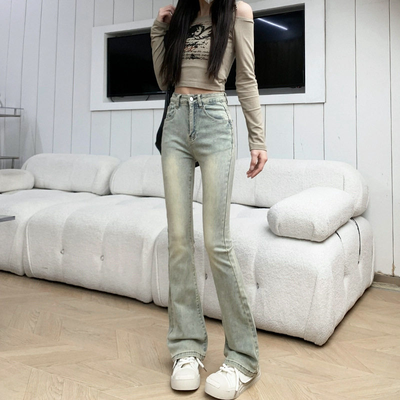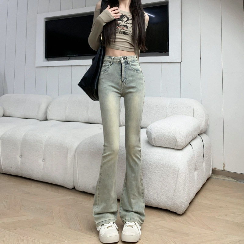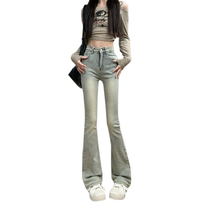 牛仔裤女款2026春装修身美式浅色马蹄裤子高腰弹力直筒微喇叭长裤