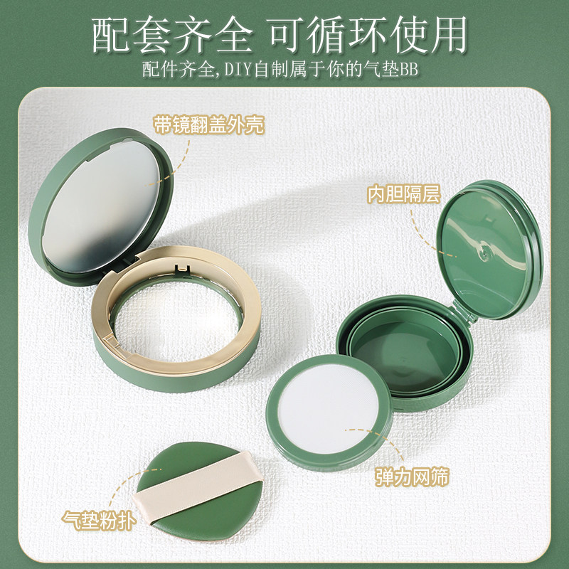 抹茶慕斯气垫盒子空盒自制粉底液分装瓶外壳气垫粉底盒diy带镜