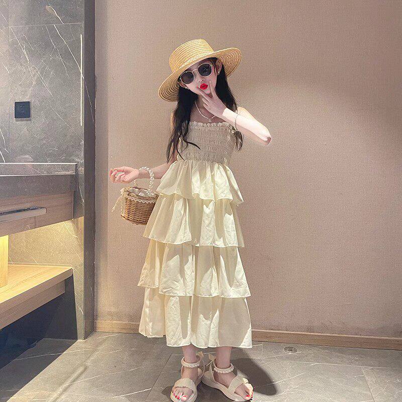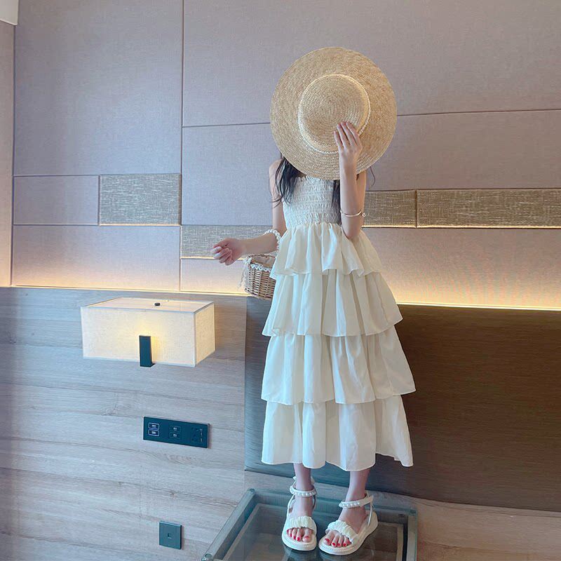 儿童连衣裙女2025新款大童女装高级感法式白色裙子女孩夏季吊带裙