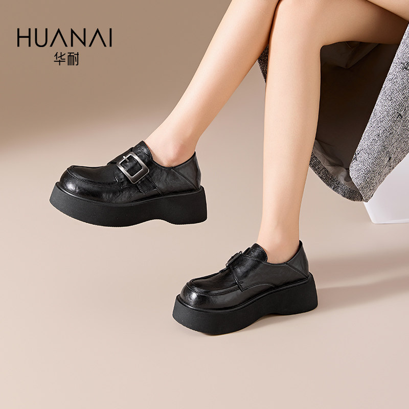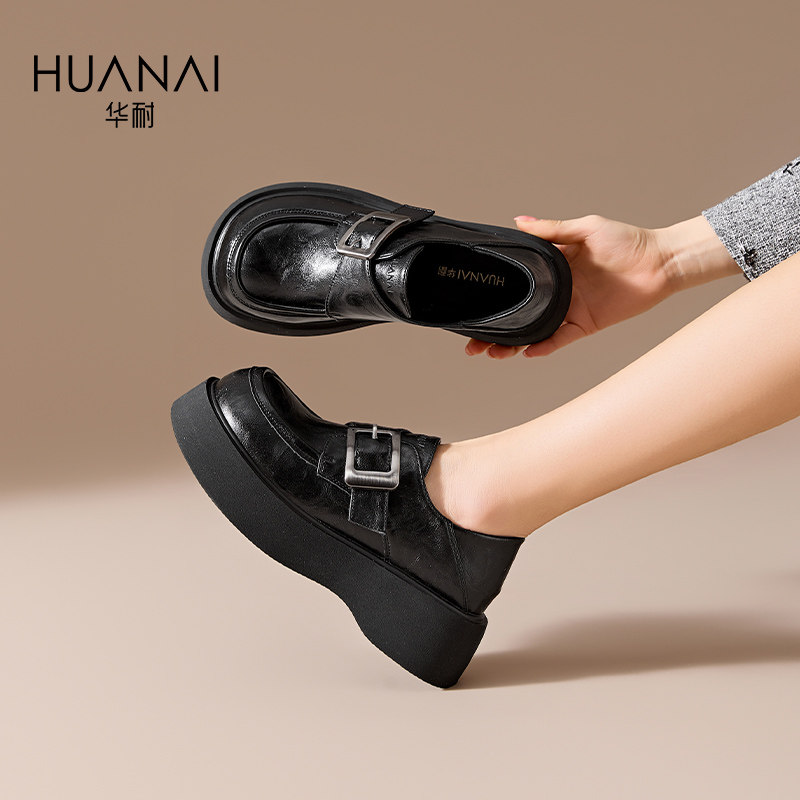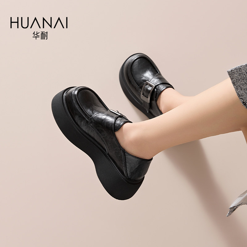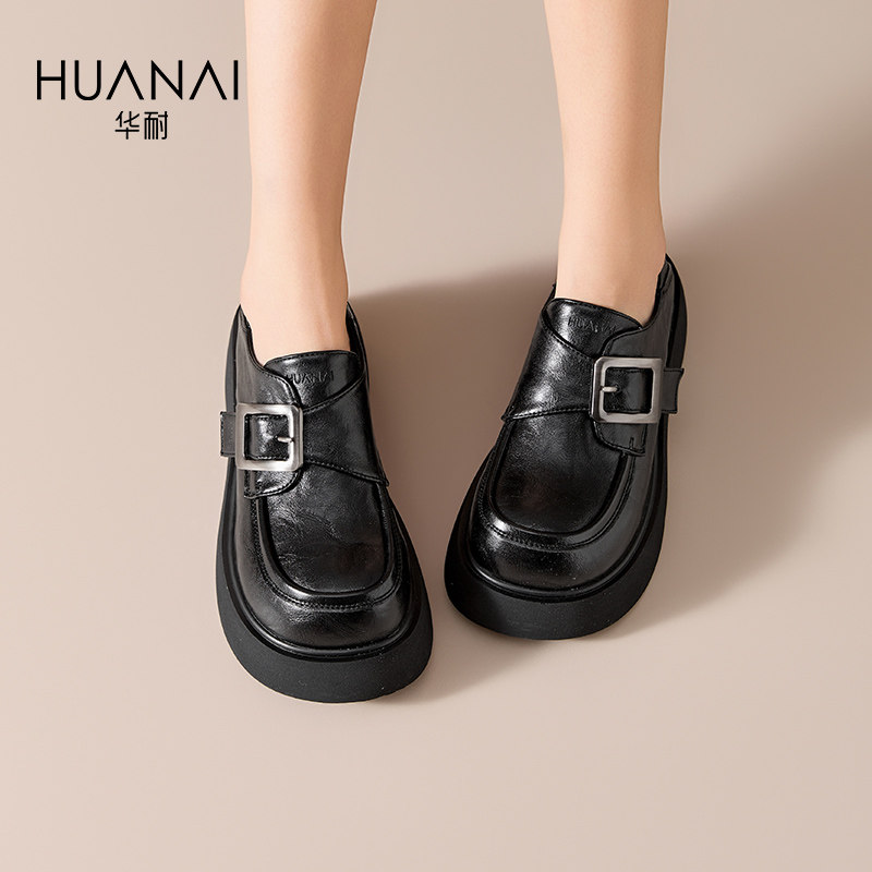 华耐乐福鞋女2026春季百搭jk厚底增高单鞋子魔术贴休闲小皮鞋