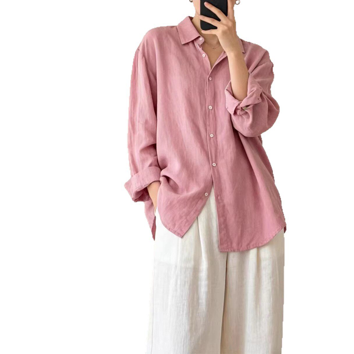 2026年春款衬衫女长袖亚麻宽松休闲韩版衬衣上衣亲肤新款衬衫时尚