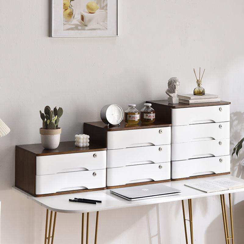 实木桌面收纳盒带锁抽屉式多层桌上收纳柜杂物储物柜办公室整理盒