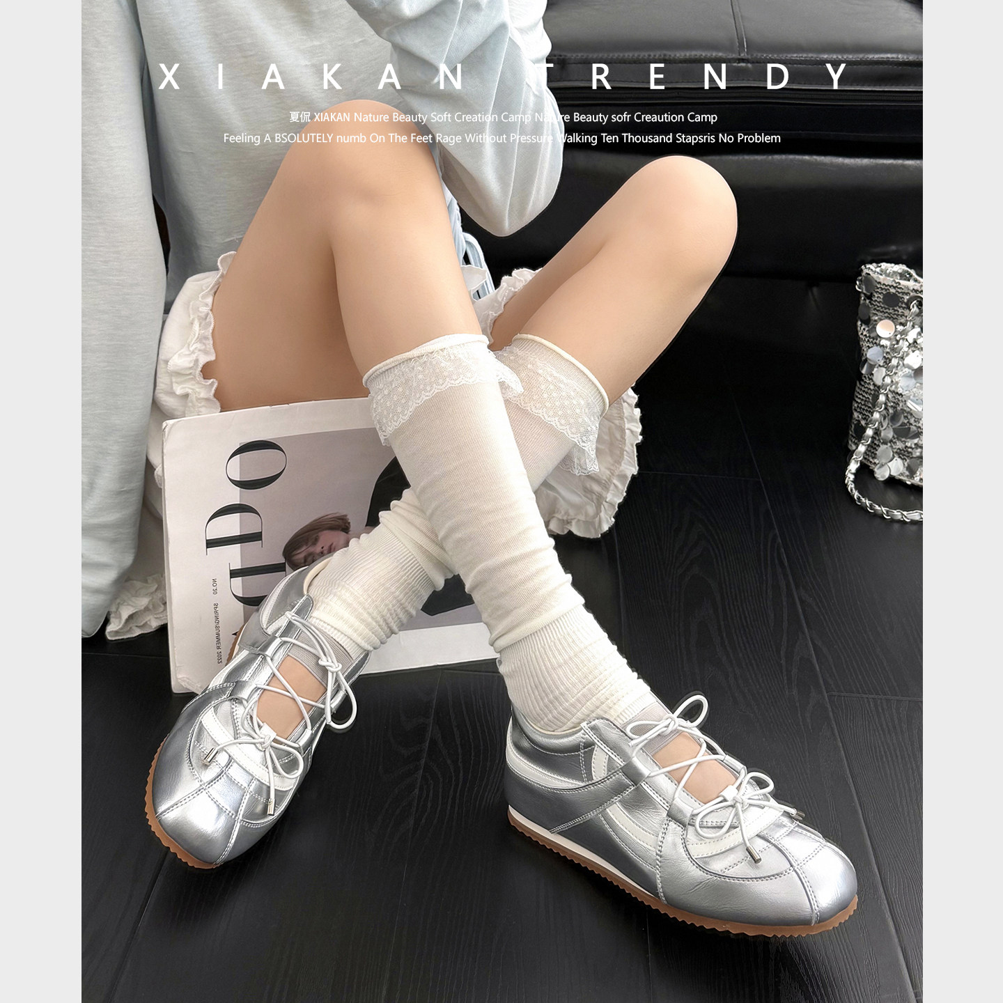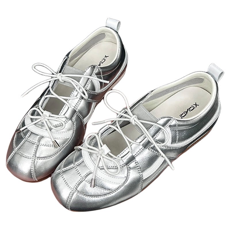 夏侃XIAKAN 银色玛丽珍单鞋女2026新款内增高5cm芭蕾休闲德训鞋