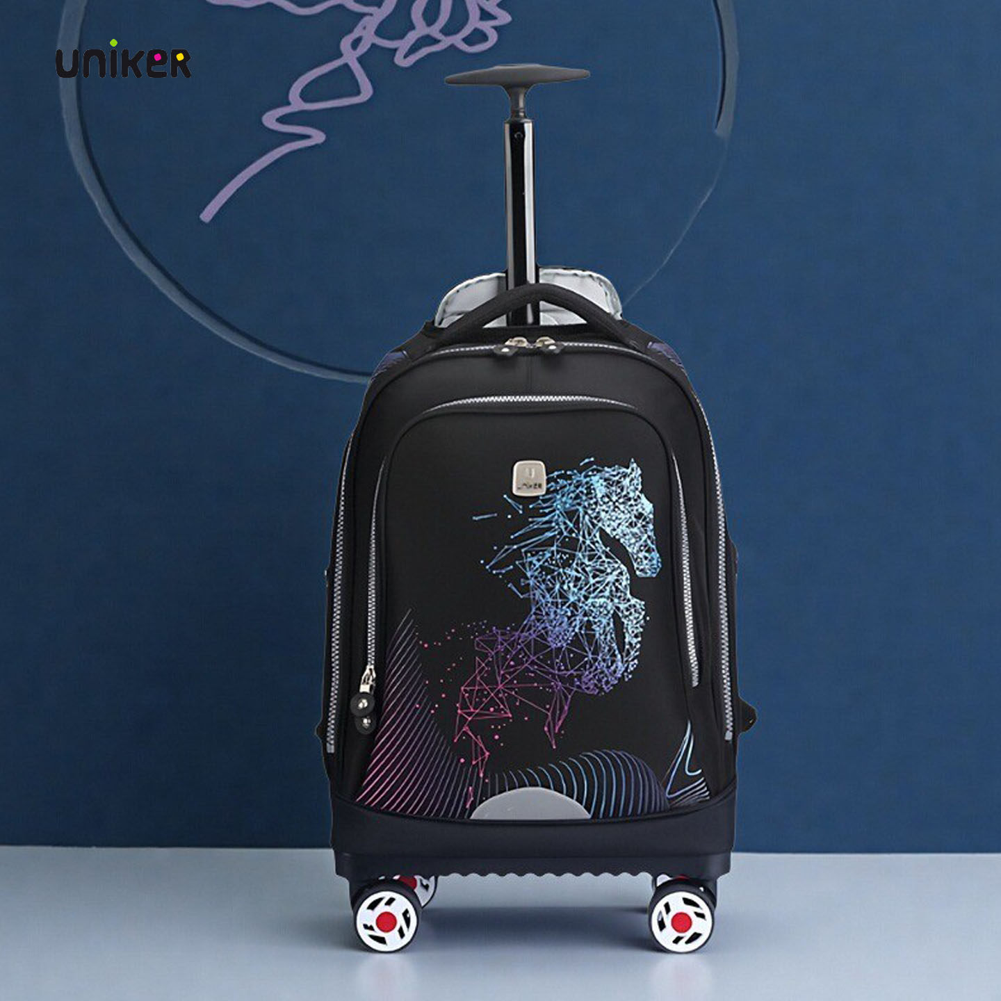 省力万向轮大容量手提拉杆书包男初高中学生双肩背女uniker旅行箱