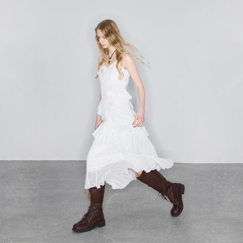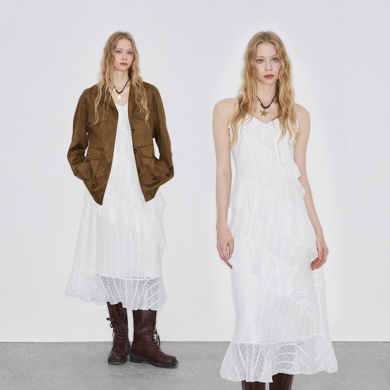 【设计师系列】Jamor加墨白色连衣裙吊带荷叶边长裙仙女裙2026春