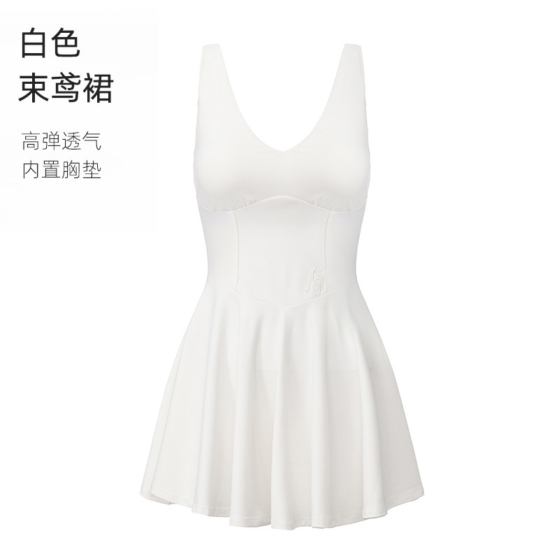 ARCTOBER白色束鸢V领交叉美背收腰运动速干网球裙连衣裙