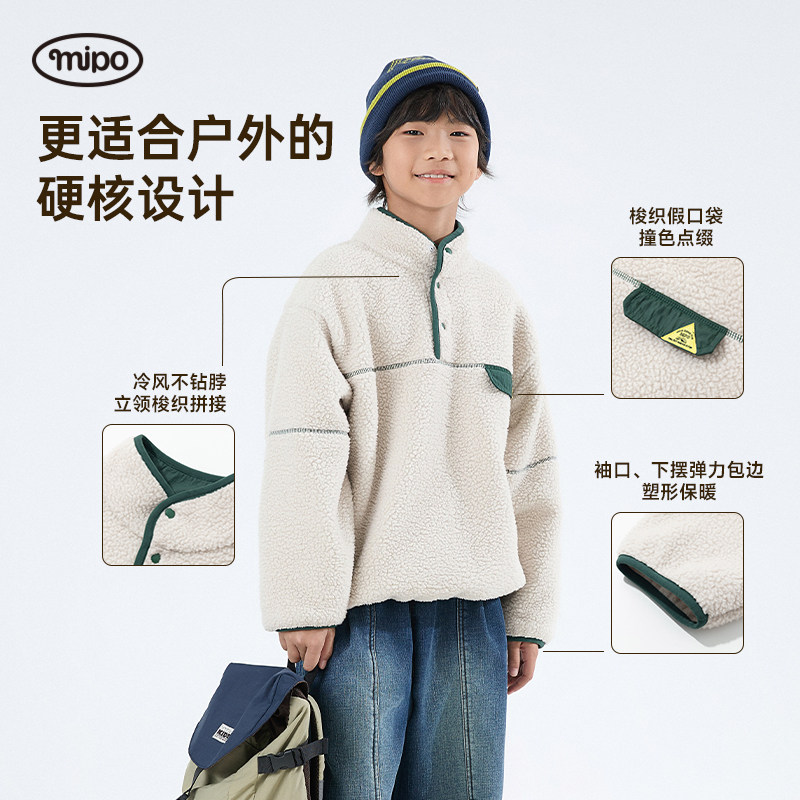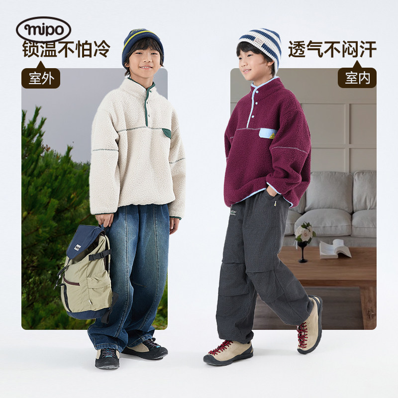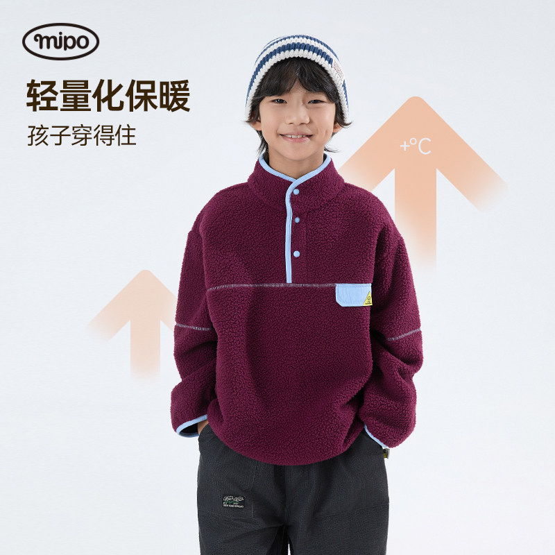 mipo冬季儿童卫衣套头撞色立领男女童户外加绒保暖校服内搭上衣