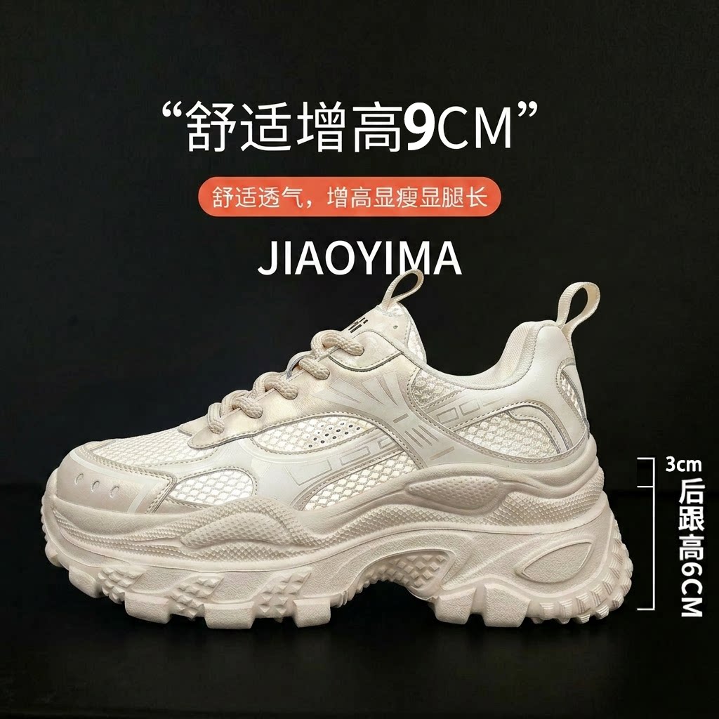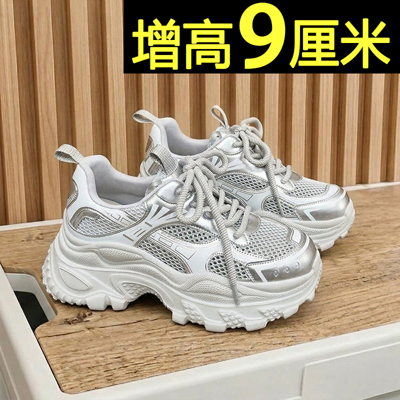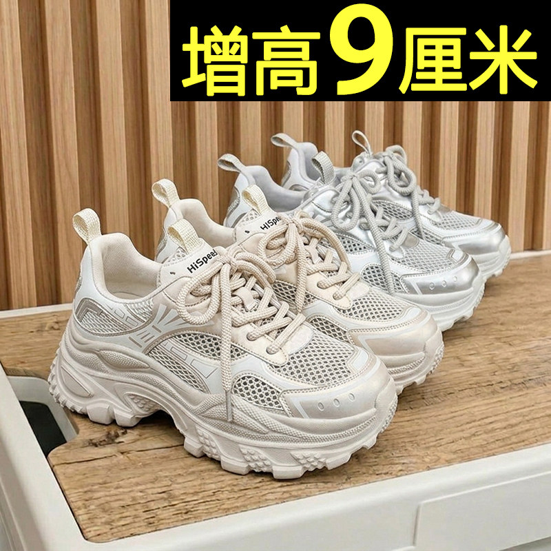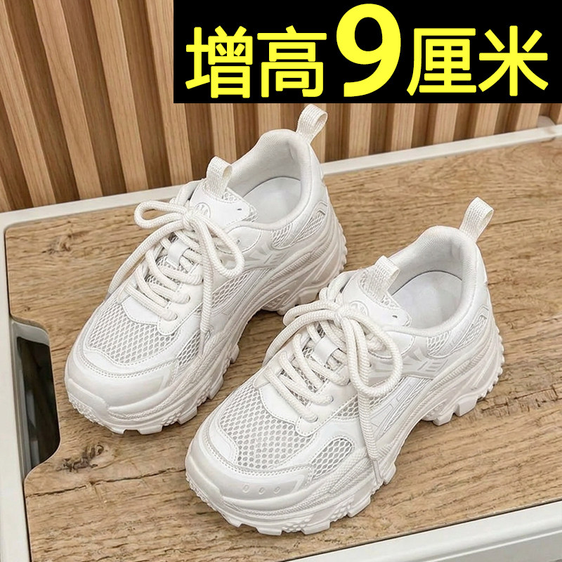 厚底老爹鞋女2026春夏季新款小个子内增高9cm网面透气运动休闲鞋