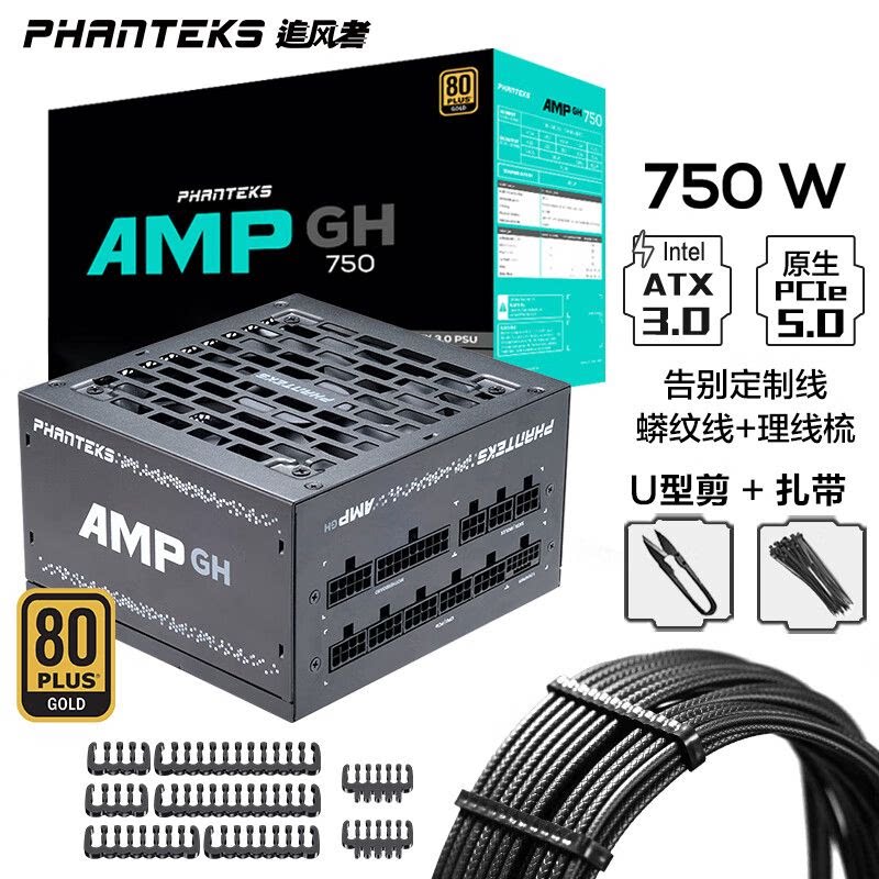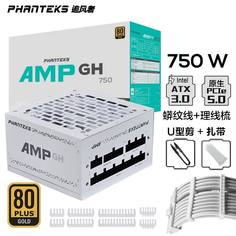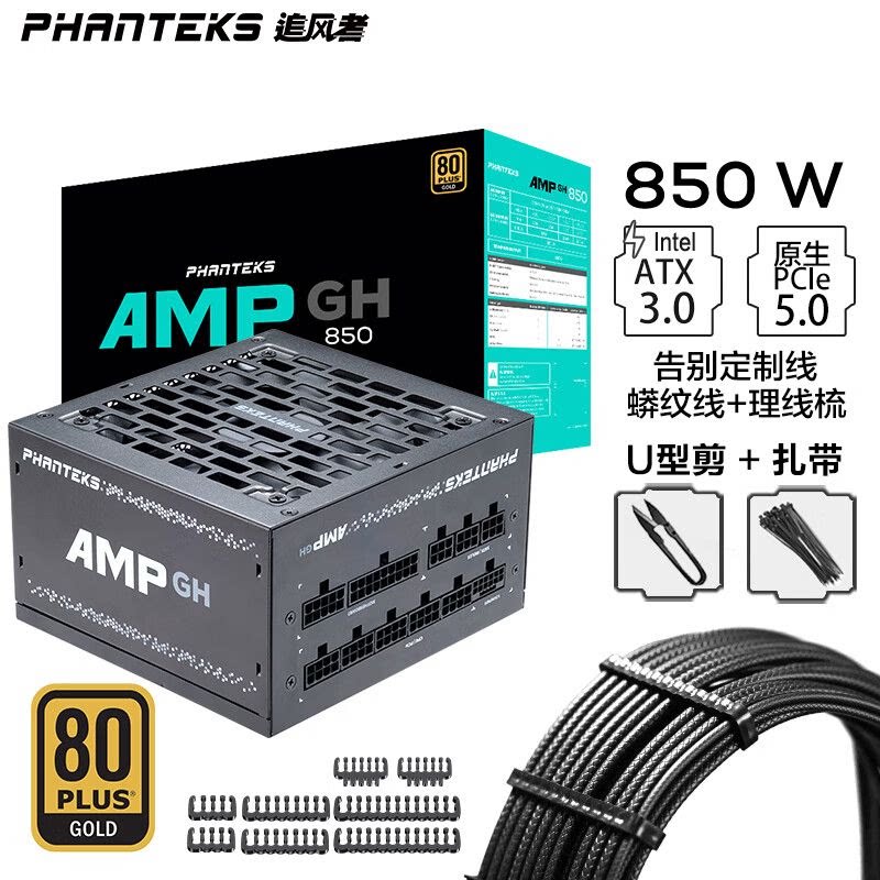 追风者AMP GH金牌650W 750W 850W全模组日系ATX3.1蟒纹线机箱电源