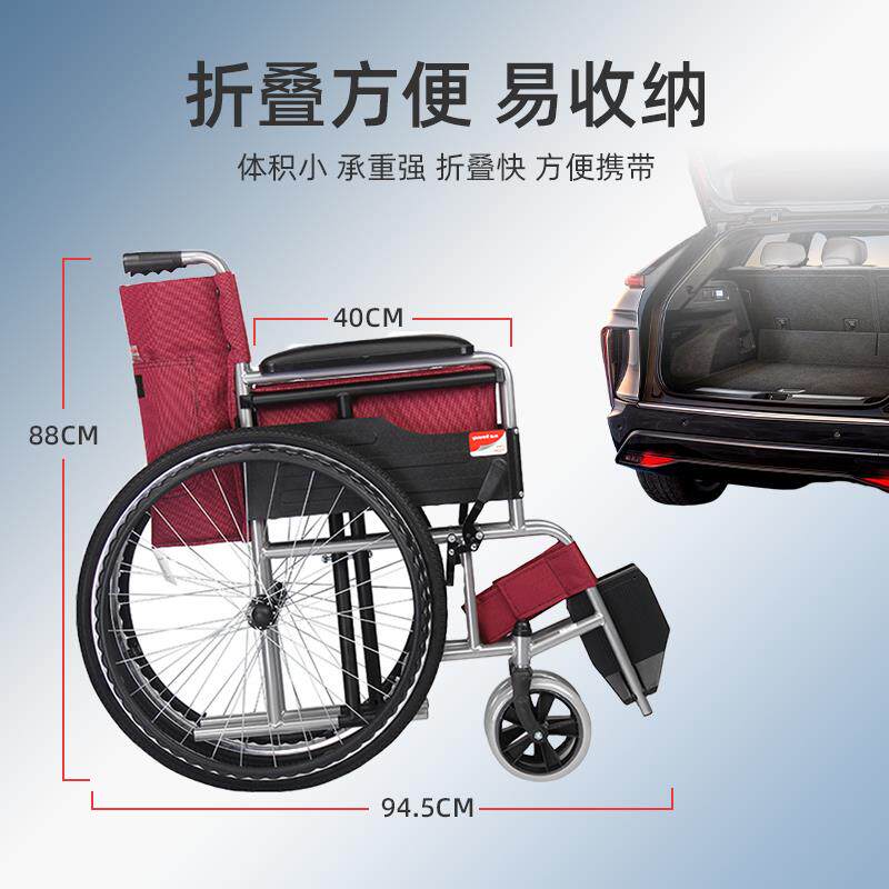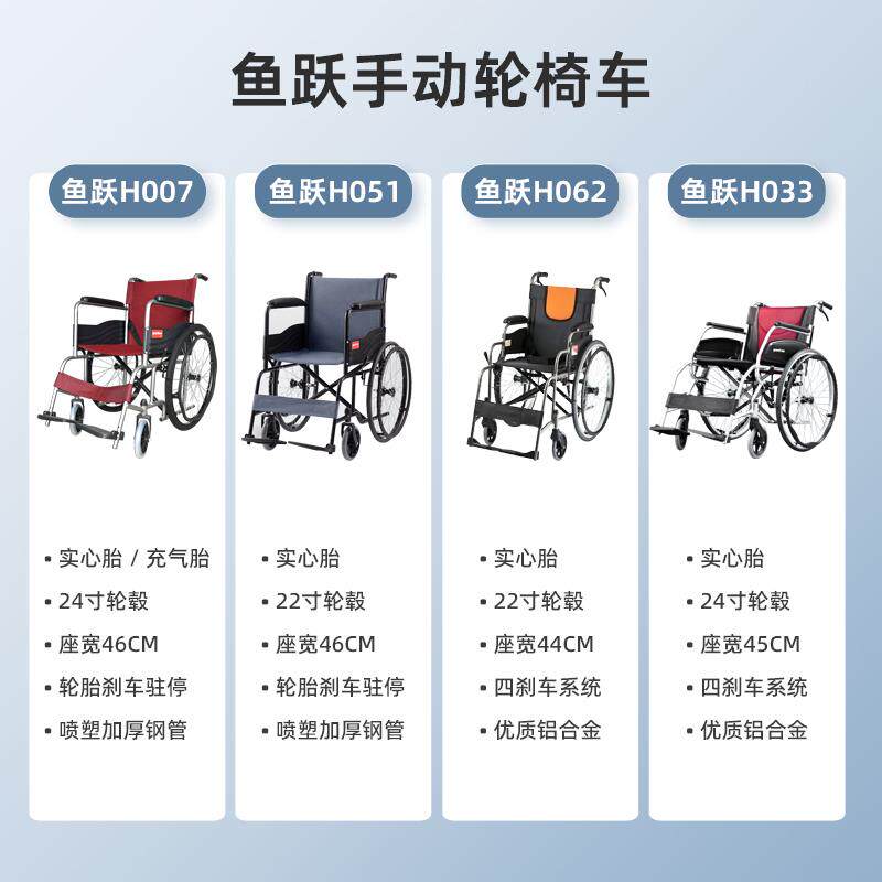 鱼跃轮椅H007轻便折叠小型老人专用多功能瘫痪身心障碍代步轮椅手