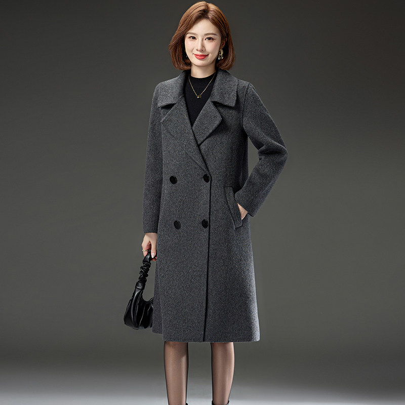 羊毛大衣双面绒女长款加厚加大码高级秋冬新品牌中年妈妈毛呢外套