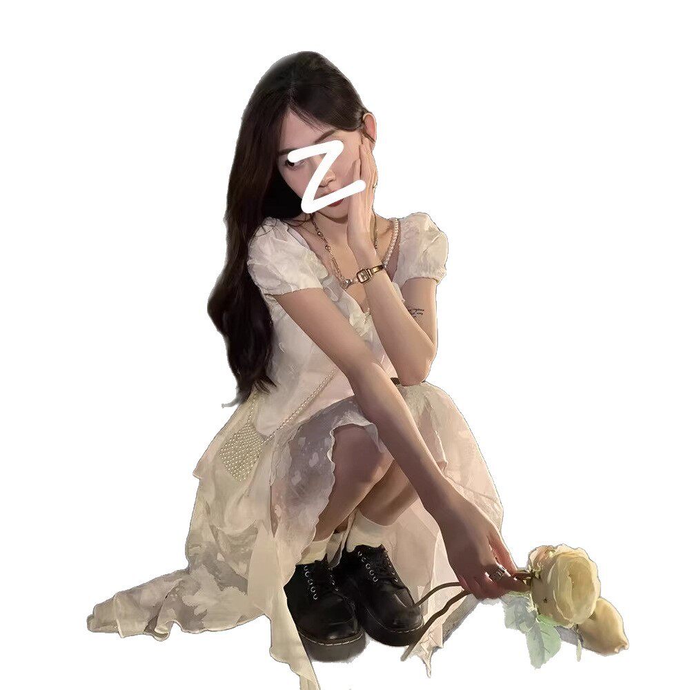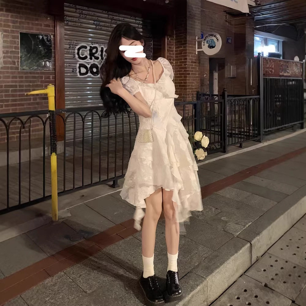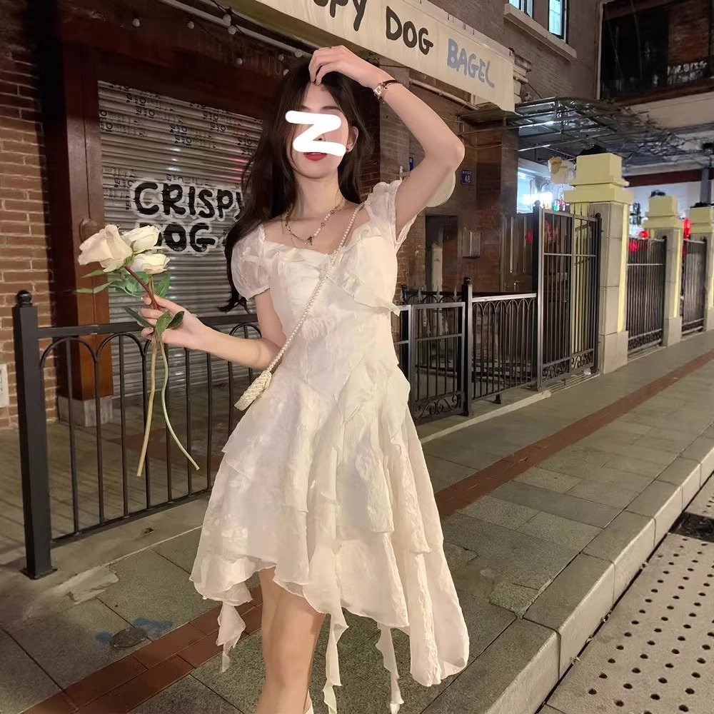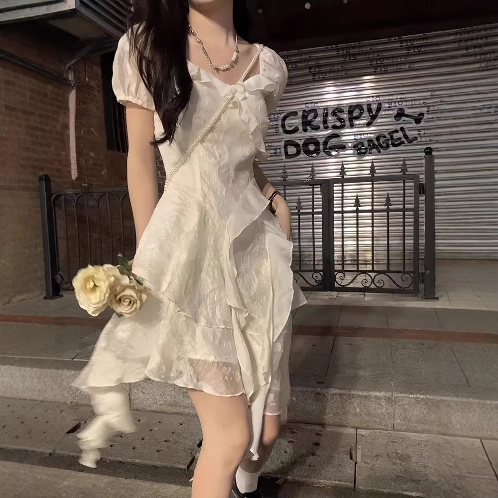 法式茶歇初恋白色连衣裙子女夏季超仙海边度假小个子不规则公主裙