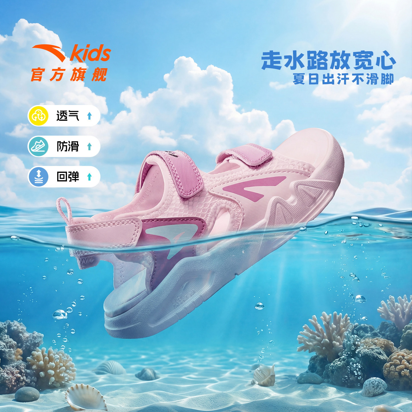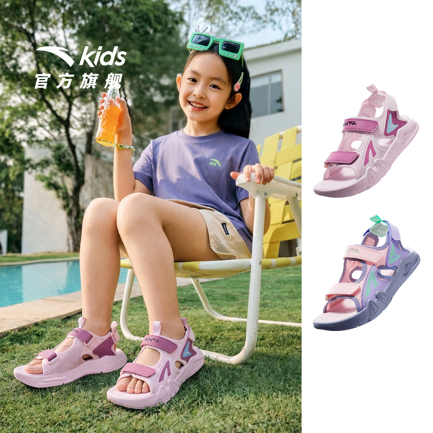 安踏儿童女小童凉鞋沙滩鞋2026年夏季新款女孩宝宝涉水露趾凉鞋潮