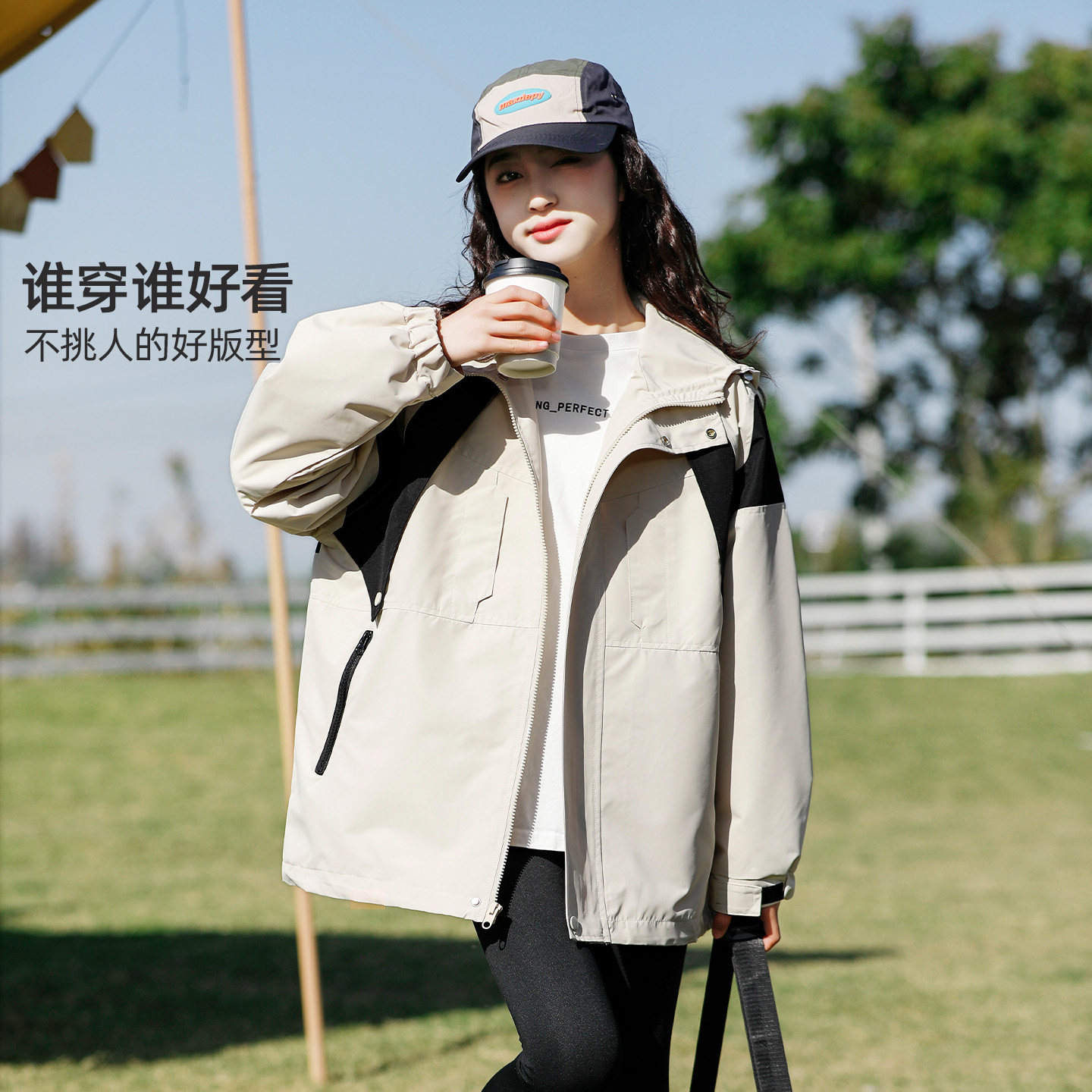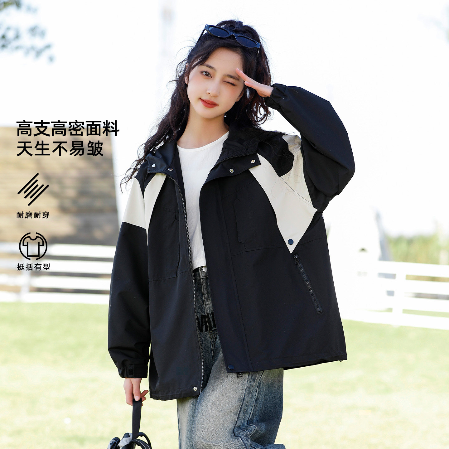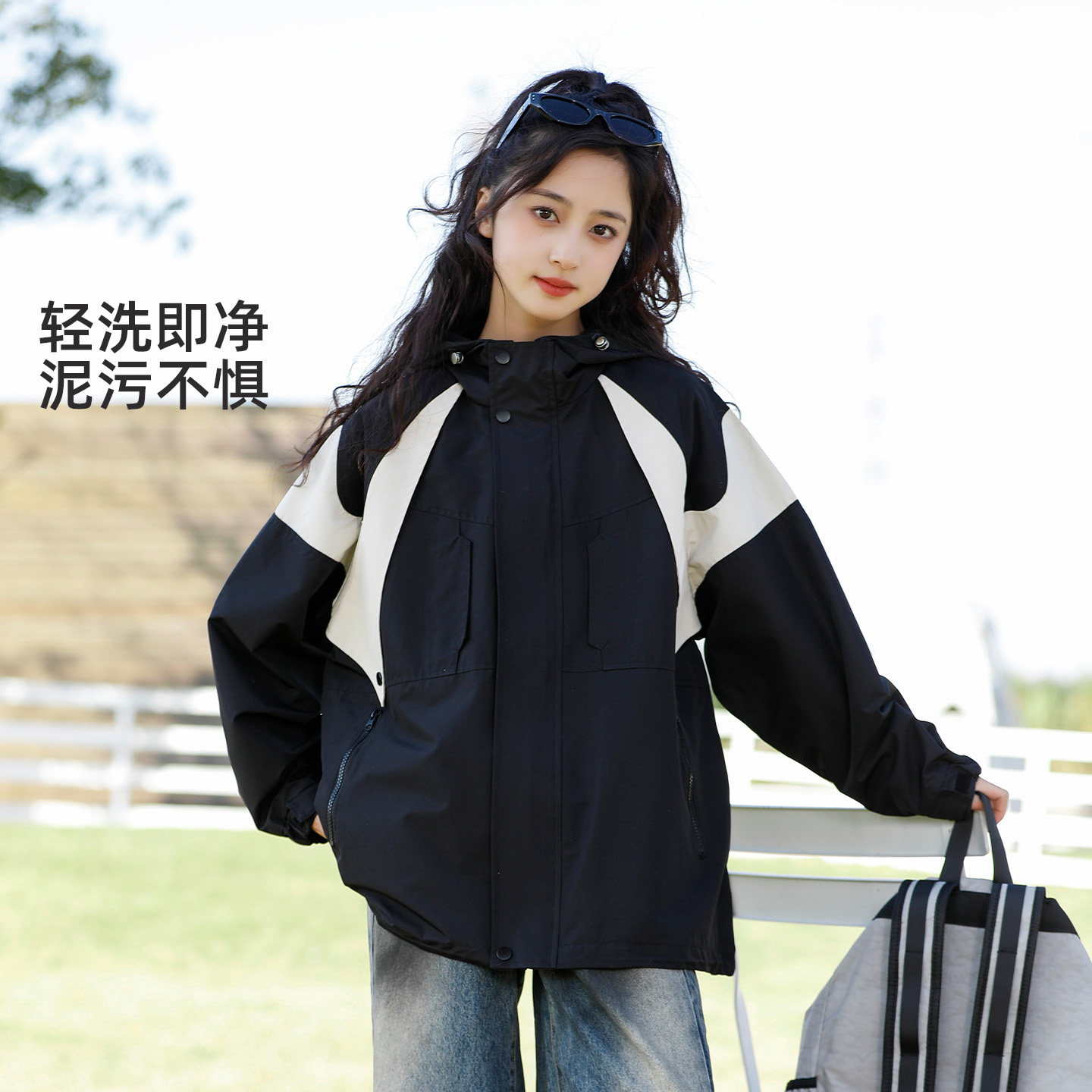 女大童春秋外套2026新款冲锋衣薄款初中生女孩青少年连帽上衣潮酷