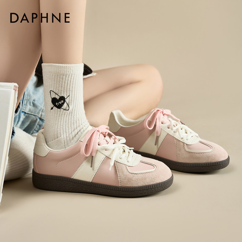 达芙妮粉色德训鞋女款2026新款夏季芭蕾运动鞋内增高透气薄款板鞋