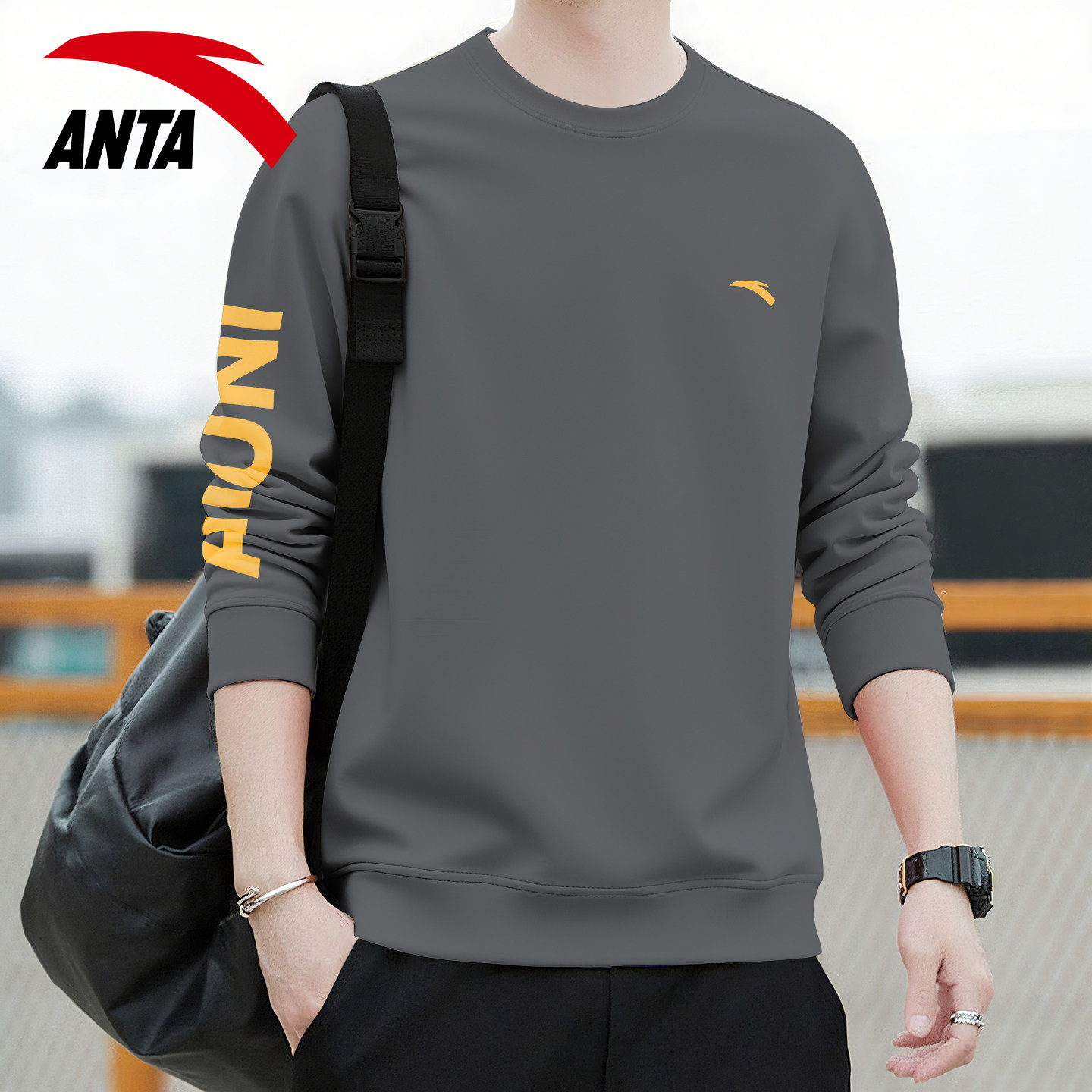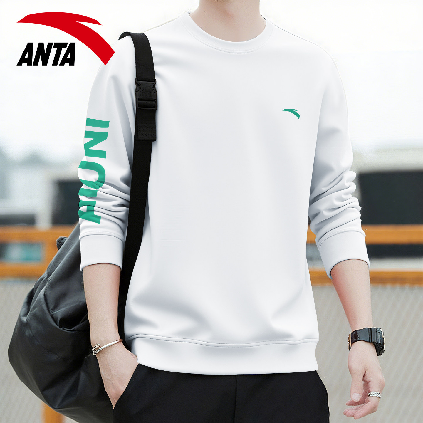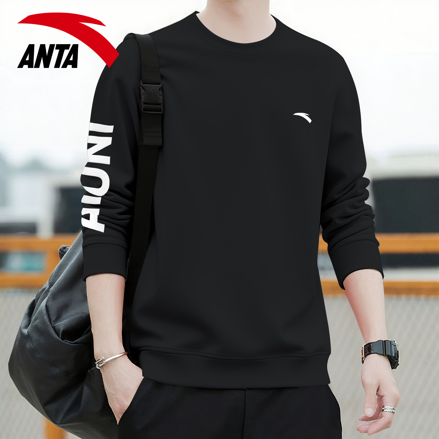 安踏卫衣男2026新款无帽套头衫上衣春季运动外套男圆领内搭打底衫