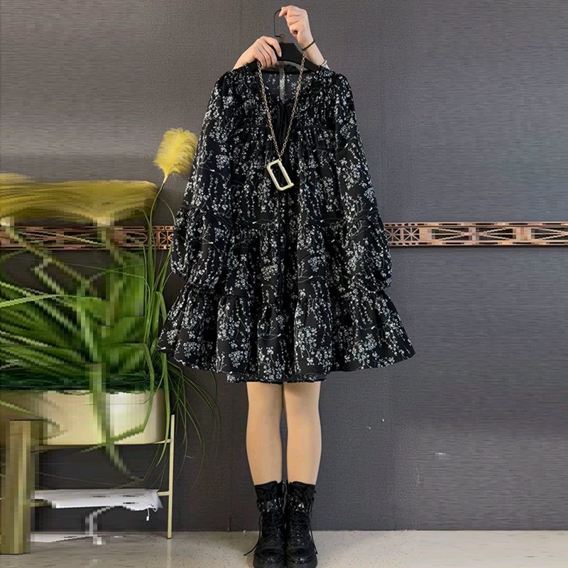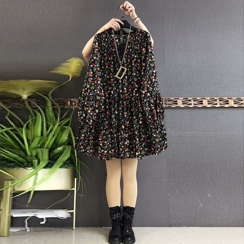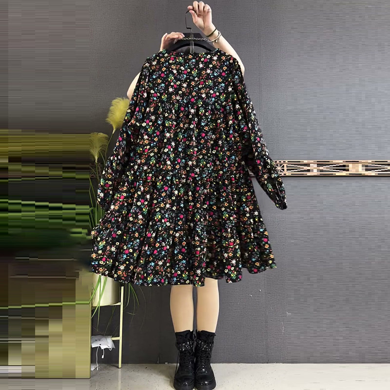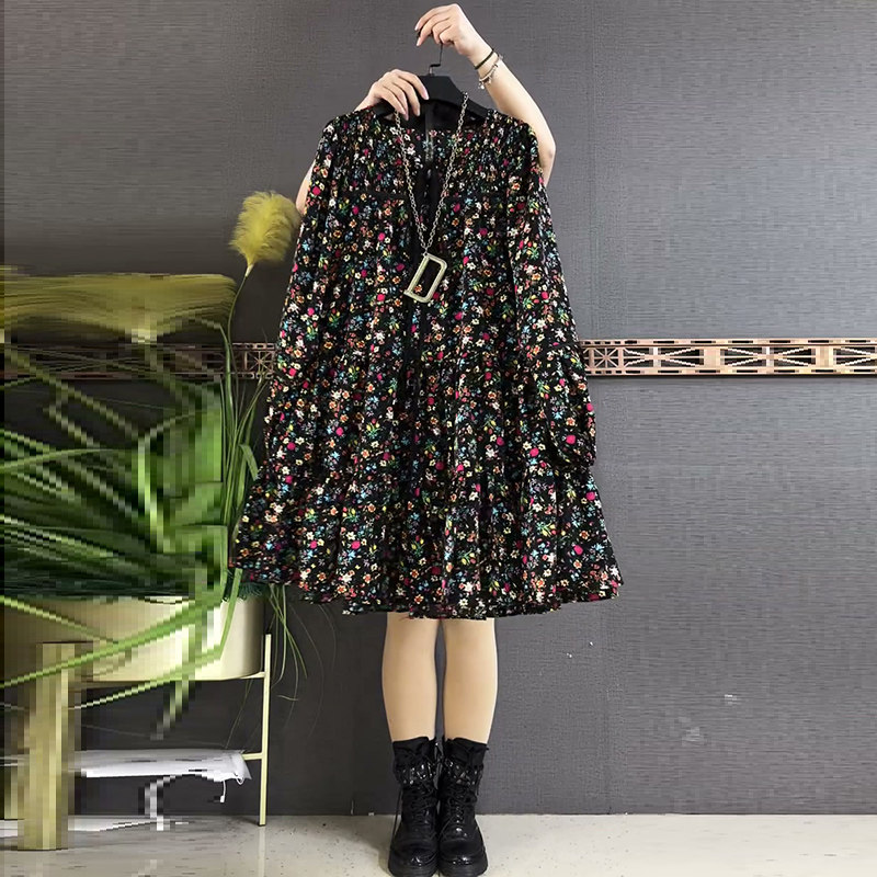 2026春季新款中长款碎花连衣裙胖mm显瘦洋气大码女装韩版V领裙子