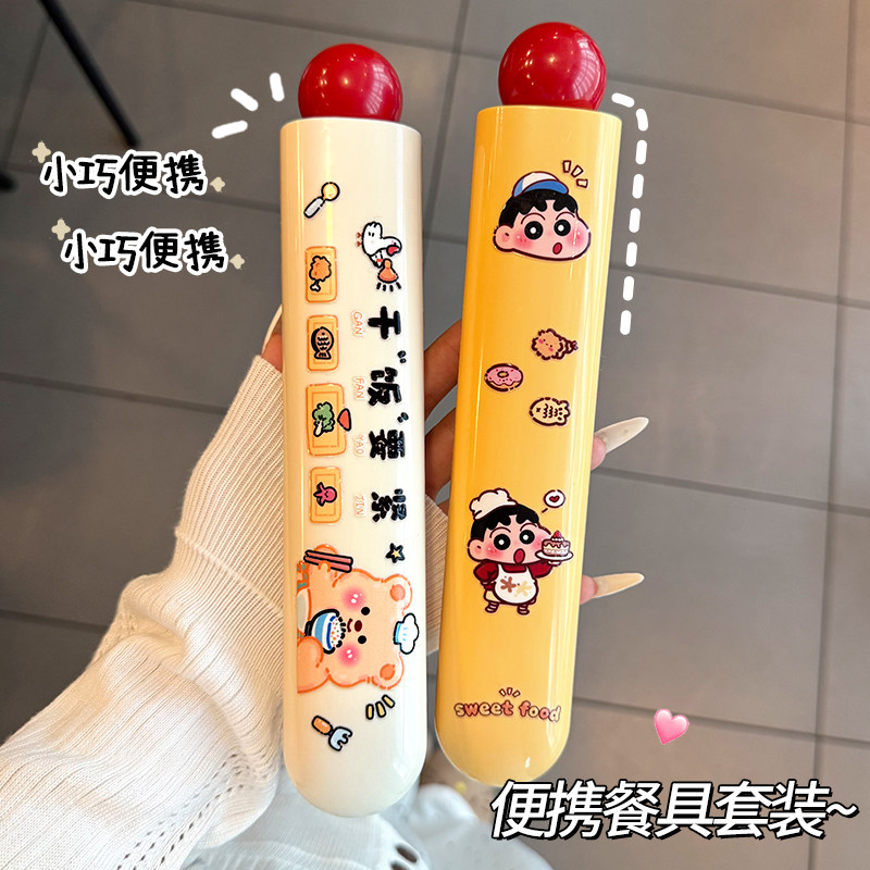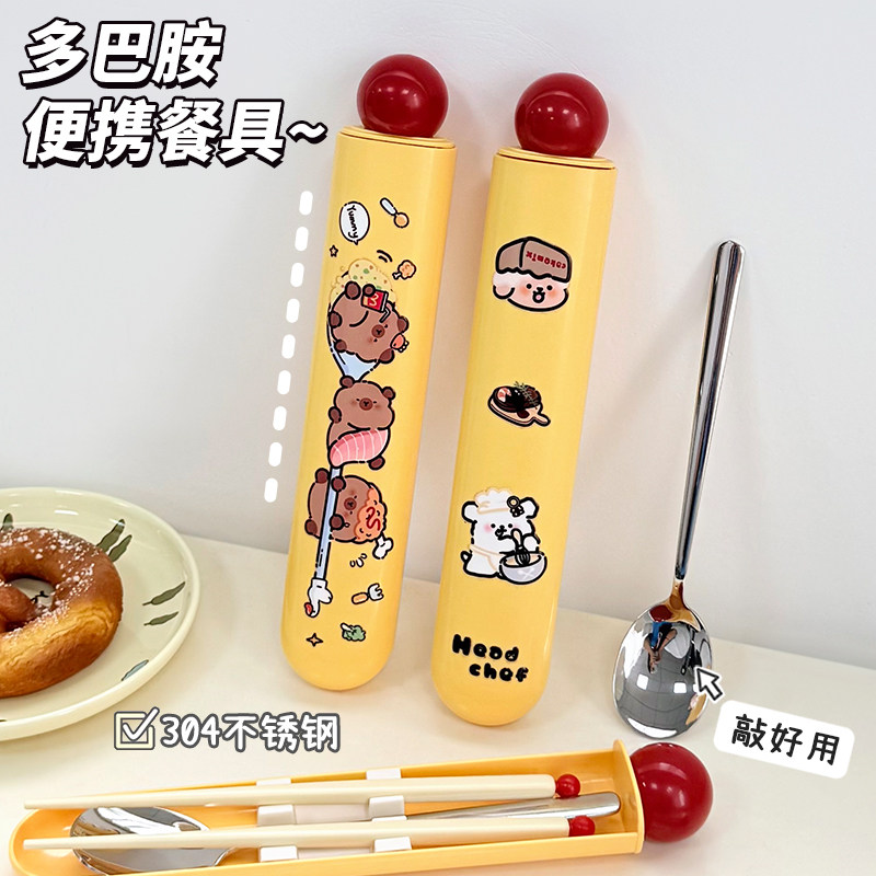 学生餐具筷子勺子套装一人用筷子收纳盒卡通多巴胺便携餐具上班族