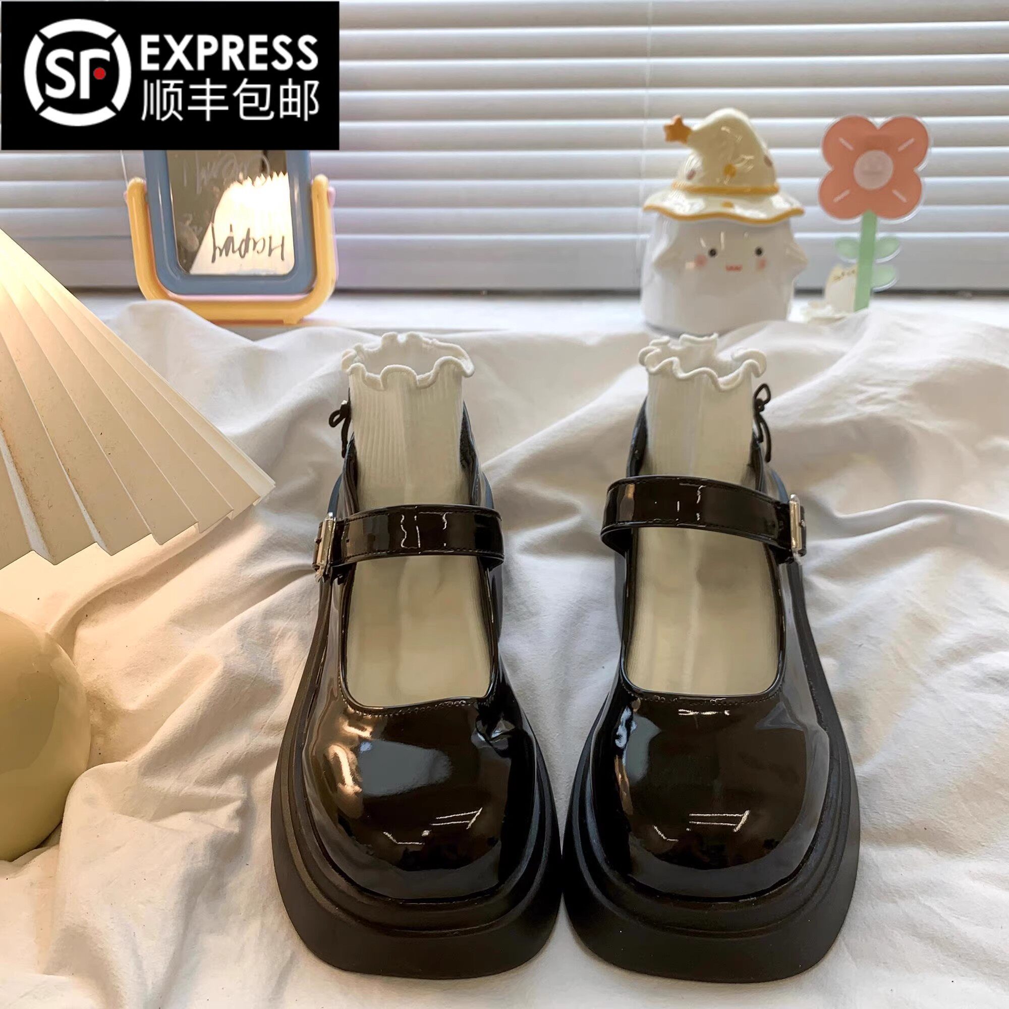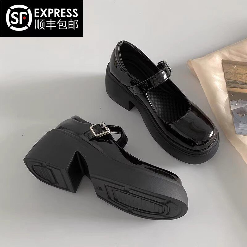 黑色百搭法式厚底高跟玛丽珍小皮鞋女2025新款春秋配裙子浅口单鞋