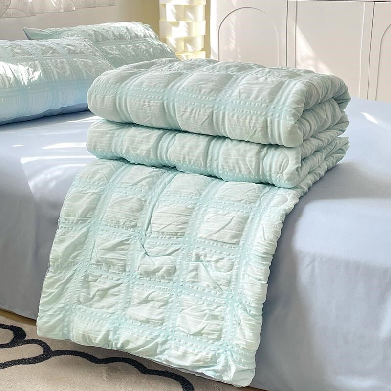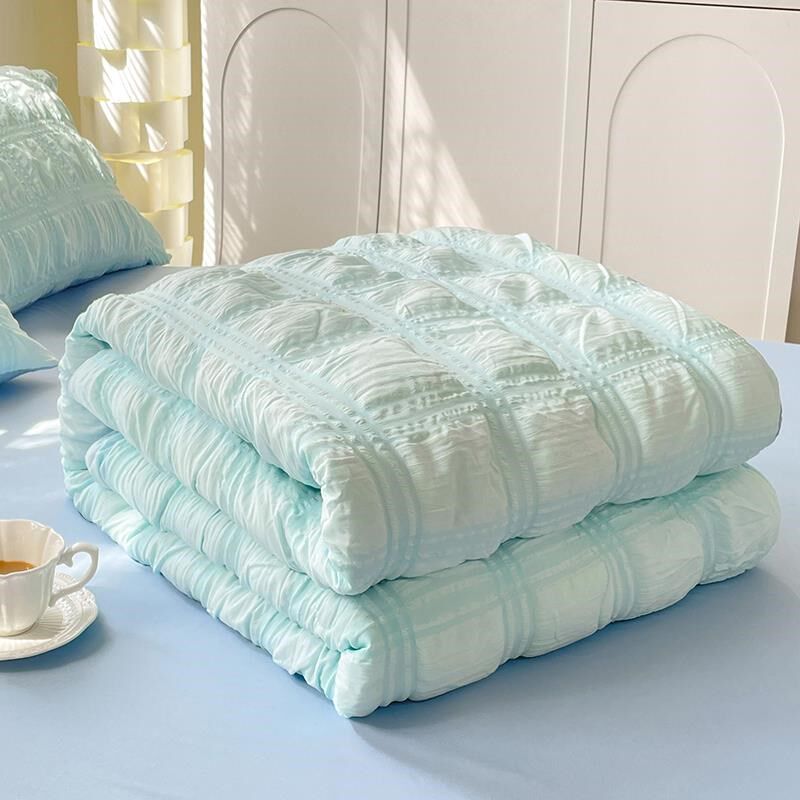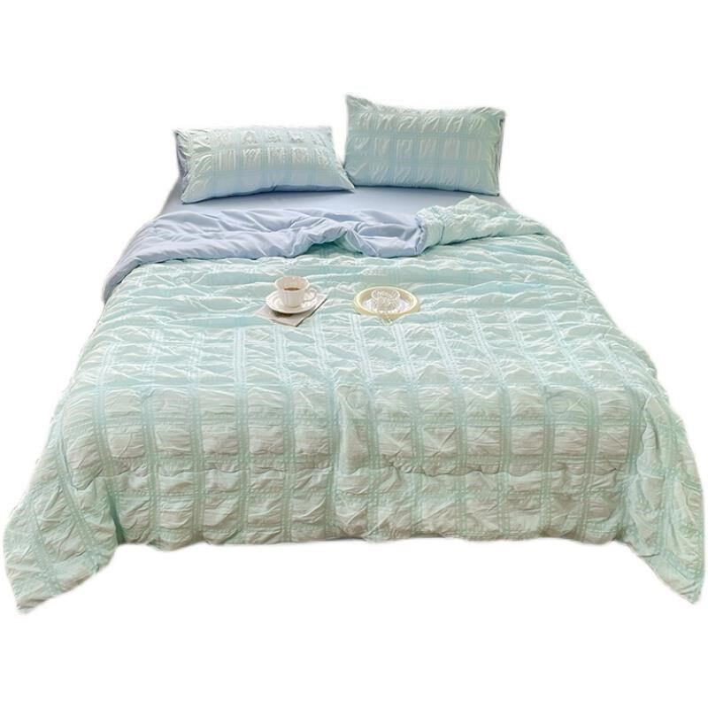直销泡泡纱蓝色空调被夏凉被床上四件套床裙薄款被子床笠夏季可机