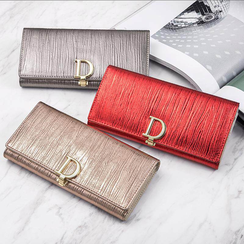 正品牛皮钱包2026新款时尚女士长款真皮钱夹子女款欧美大容量金色
