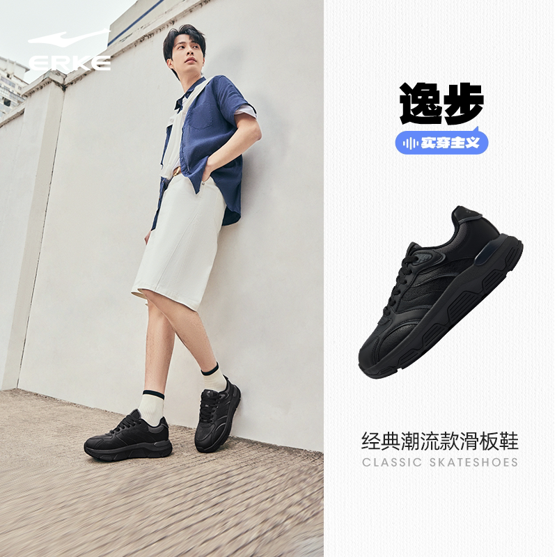 逸步鸿星尔克男鞋板鞋夏季新款鞋子复古厚底休闲鞋黑色百搭运动鞋