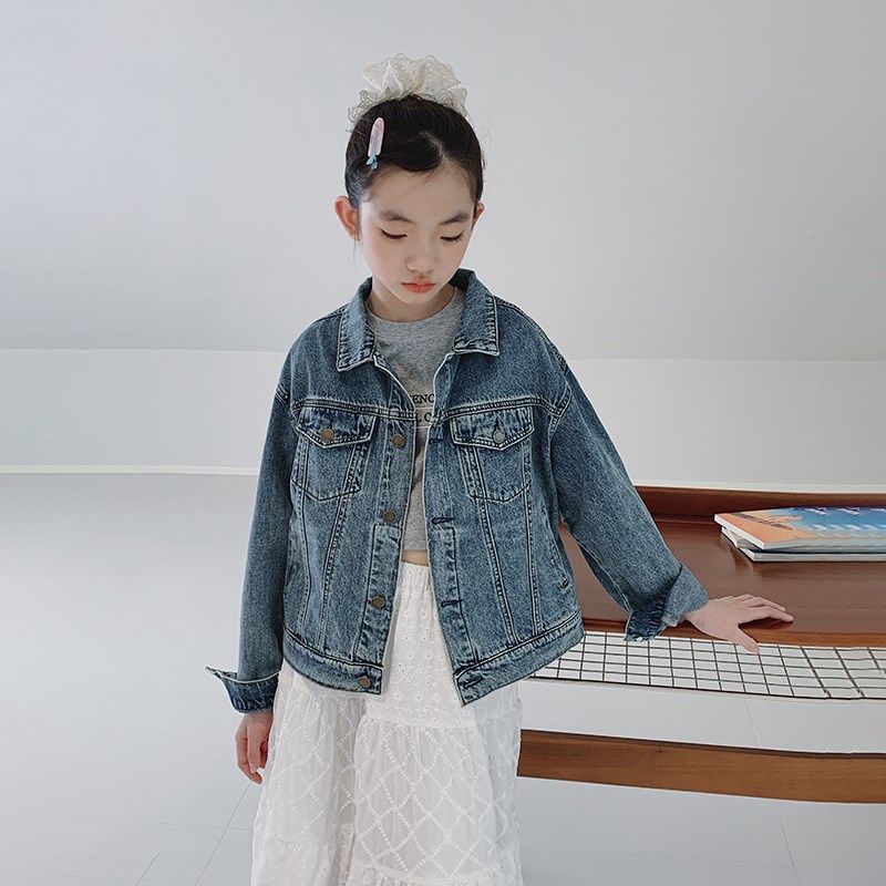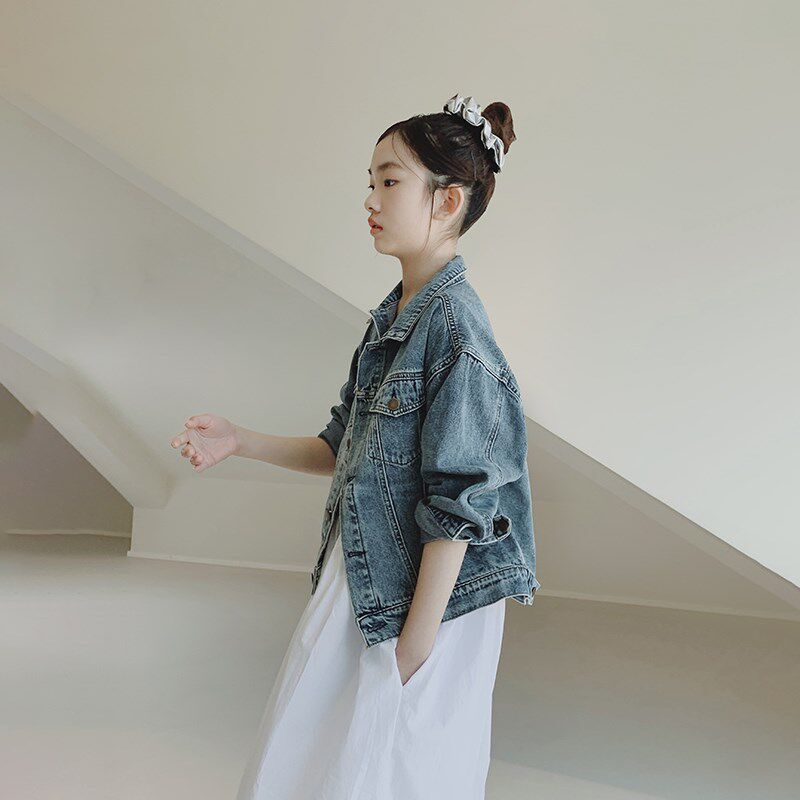女大童牛仔外套2025春装新款初中生女孩儿童时髦复古短款牛仔上衣
