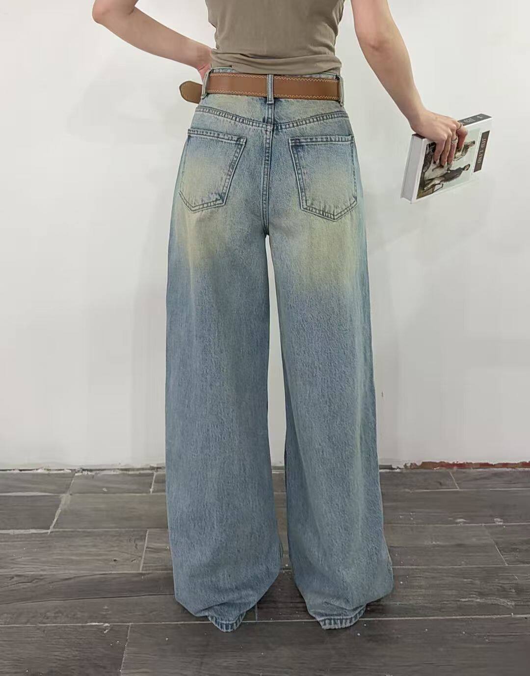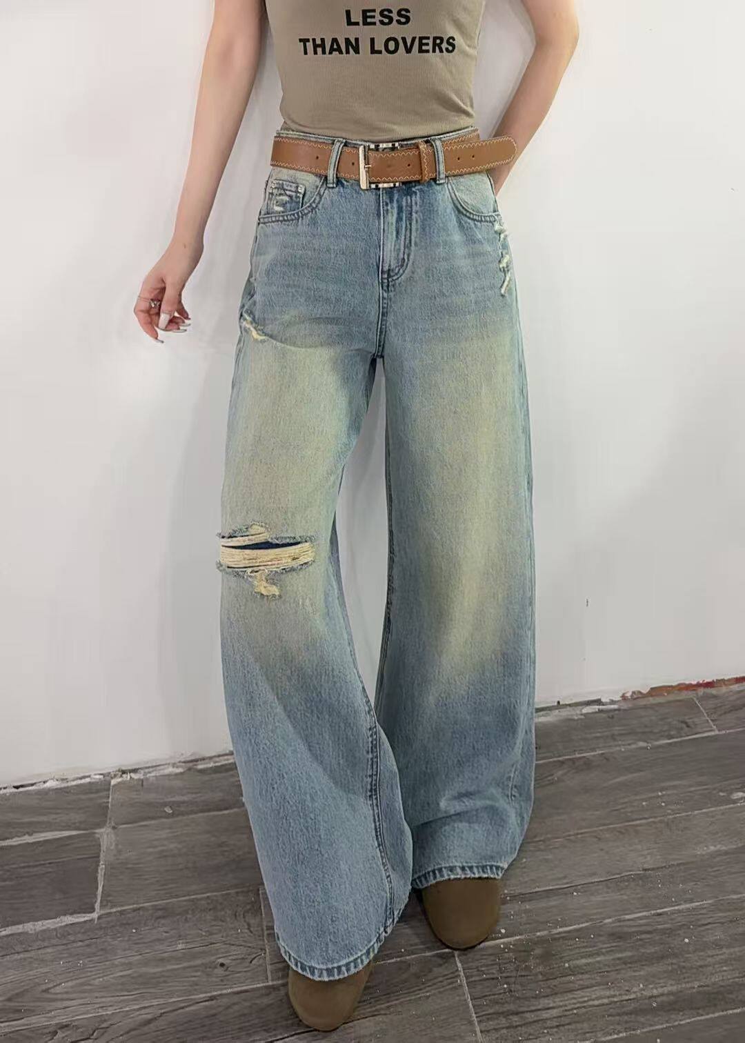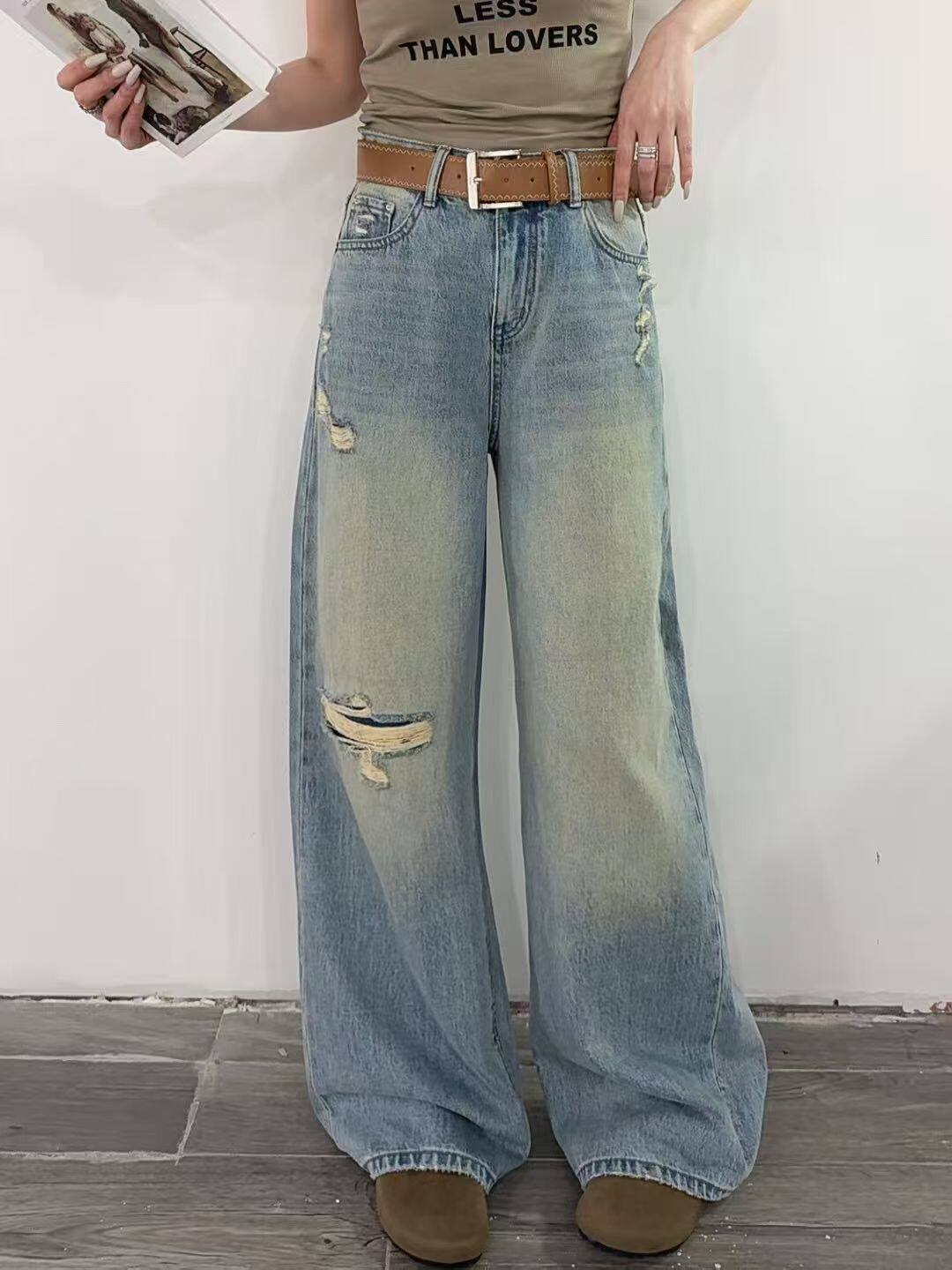 GVCI 新款2026春款破洞牛仔裤女宽松显瘦直筒阔腿拖地长裤子
