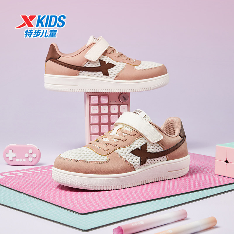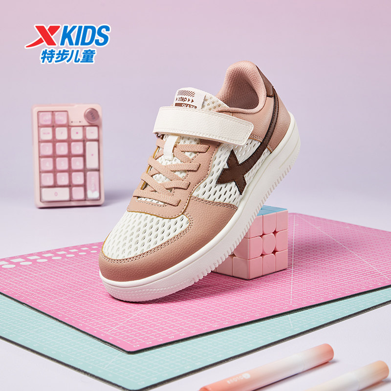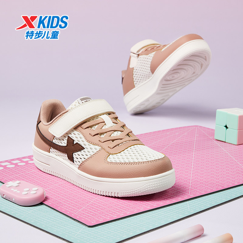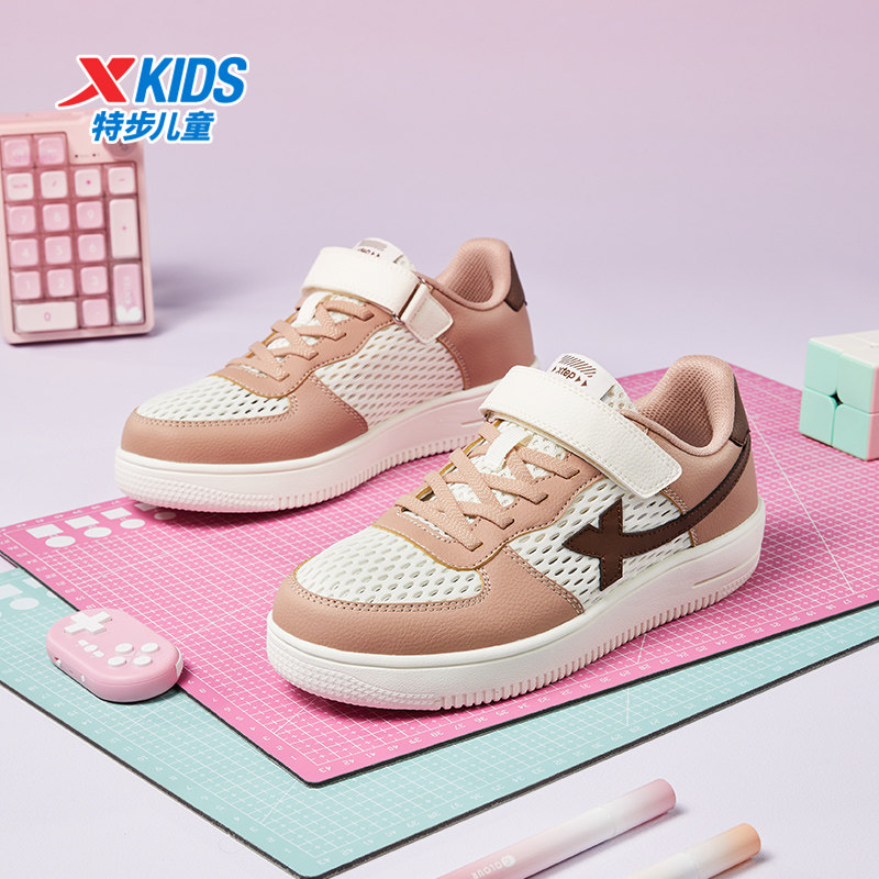 特步童鞋夏季新款儿童女童板鞋运动鞋中大童休闲鞋网面透气小白鞋