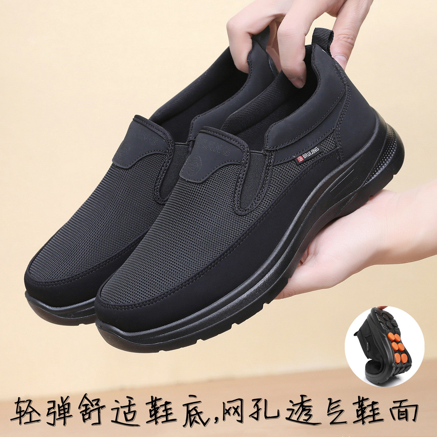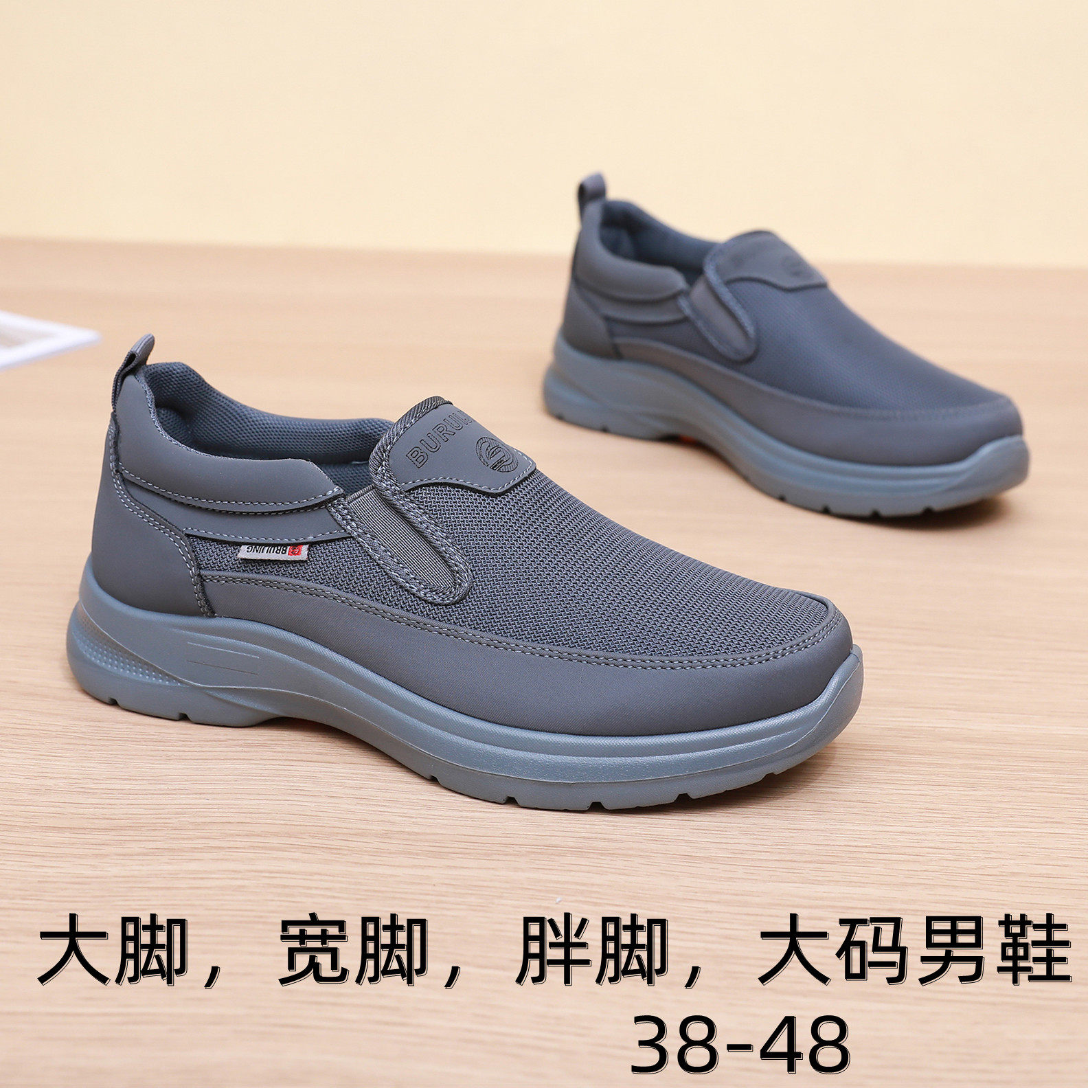 26春款大脚大码厚底宽松透气老北京男鞋中年平底一脚蹬防滑单鞋48