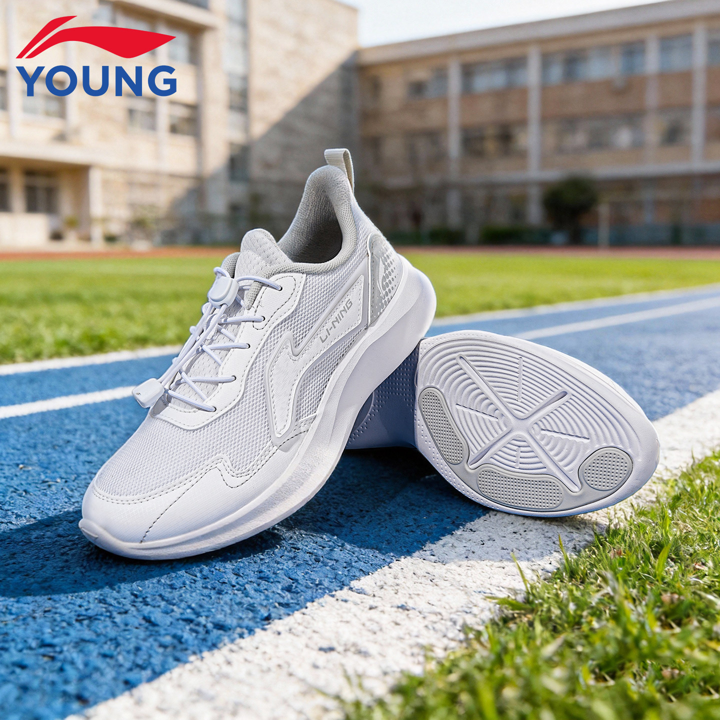 李宁儿童小白鞋男童运动鞋2026新款网面女童青少年学生白色跑步鞋