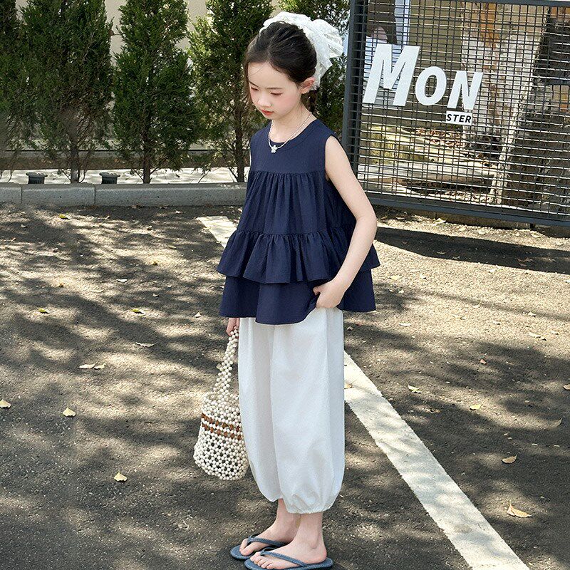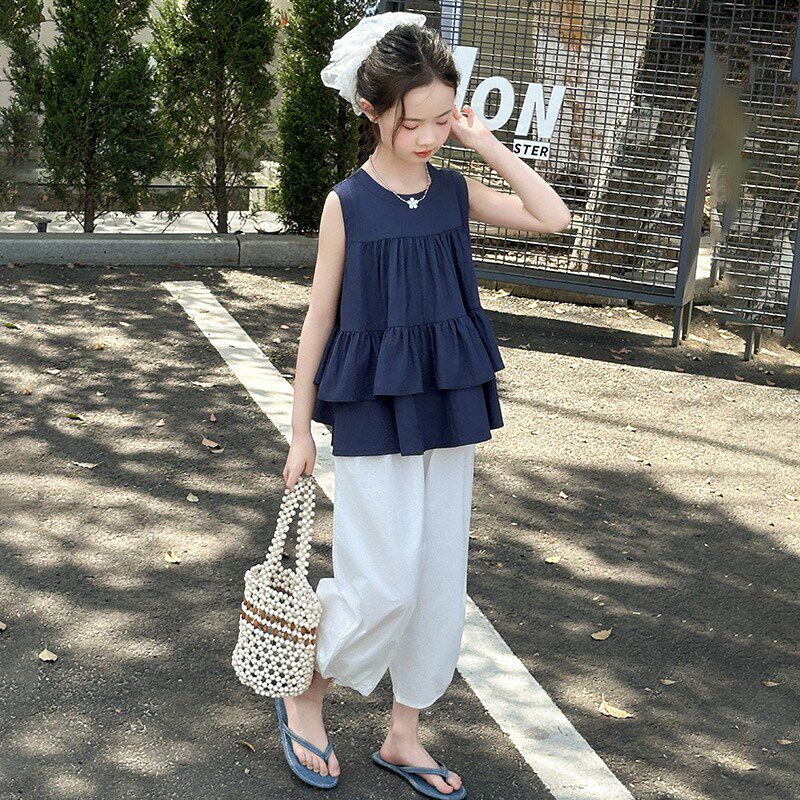 女童洋气时髦夏季套装2025新款韩版儿童超好看无袖娃娃衫裤子薄款