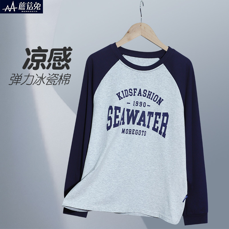 胖童装男童长袖T恤春秋薄款宽松加肥加大青少年初中生圆领打底衫