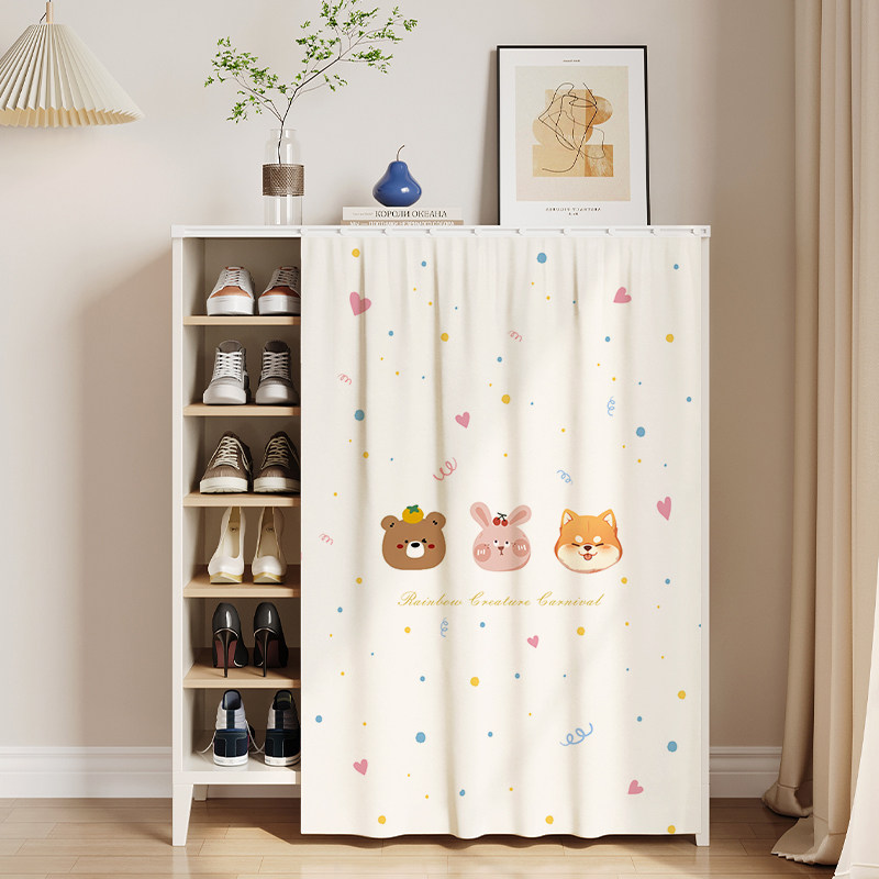 无门鞋柜遮挡帘魔术贴免打孔橱柜防尘帘子置物架杂物柜子遮丑布帘