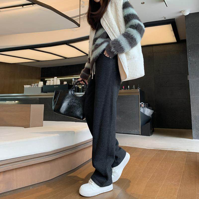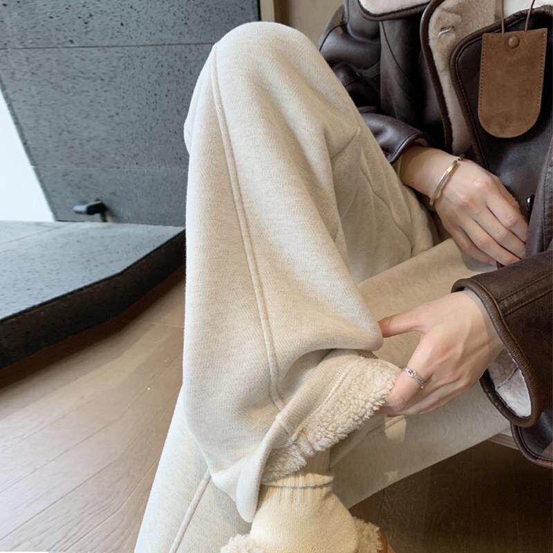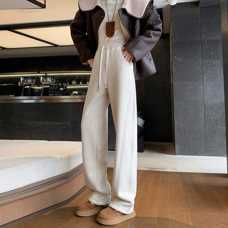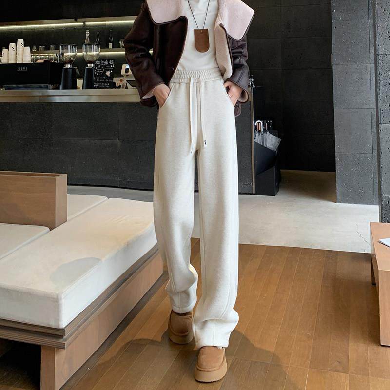 加绒加厚阔腿裤女2025新款白色加长款高个子女裤春秋直筒裤子冬季