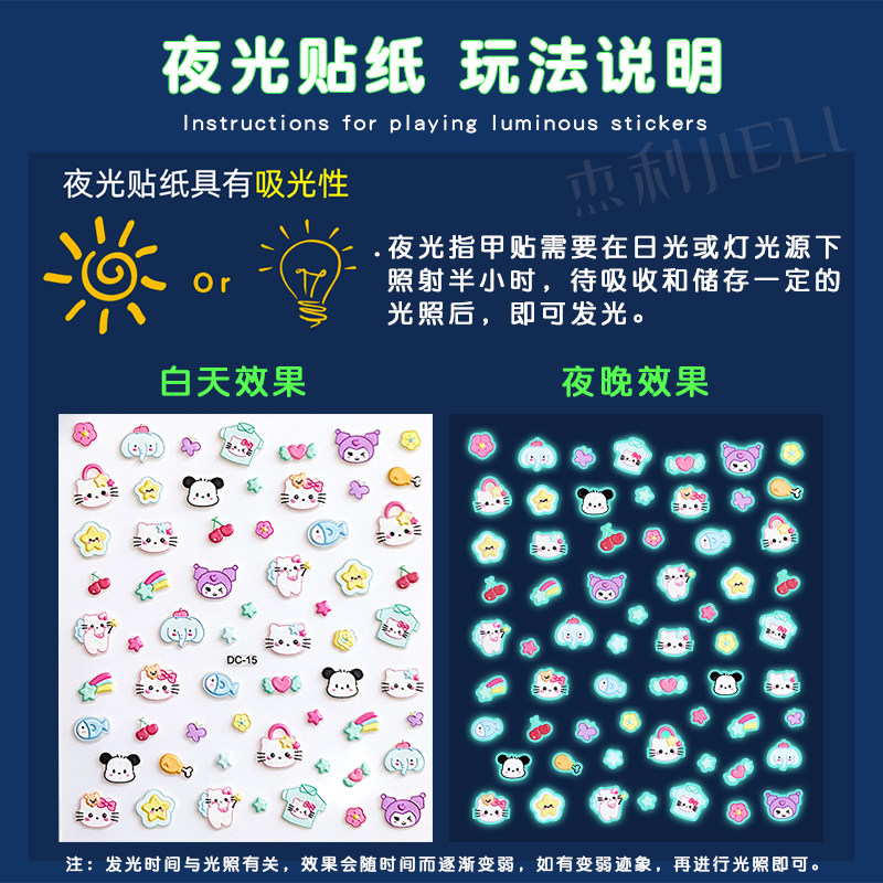 夜光指甲贴5d浮雕儿童女孩防水纹身贴画宝宝美甲贴片公主脚趾甲贴网红卡通可爱荧光手指自粘玩具万圣贴纸