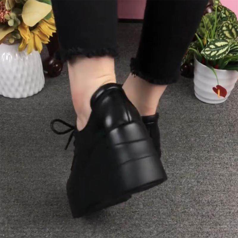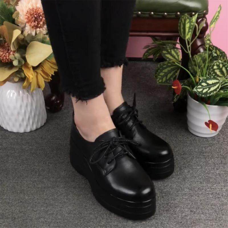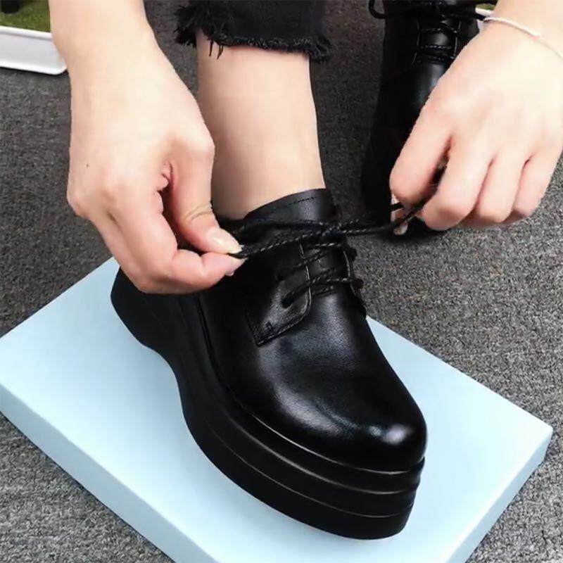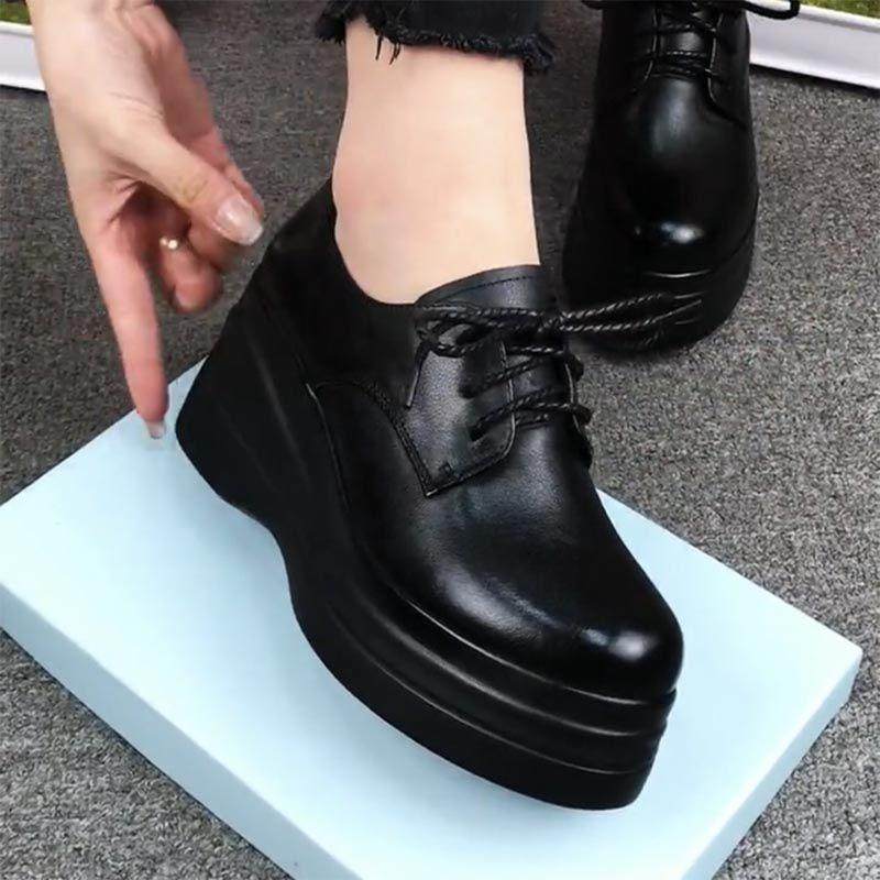 品牌断码真皮厚底高跟7厘米2025新款防滑松糕鞋黑色小个子乐福鞋